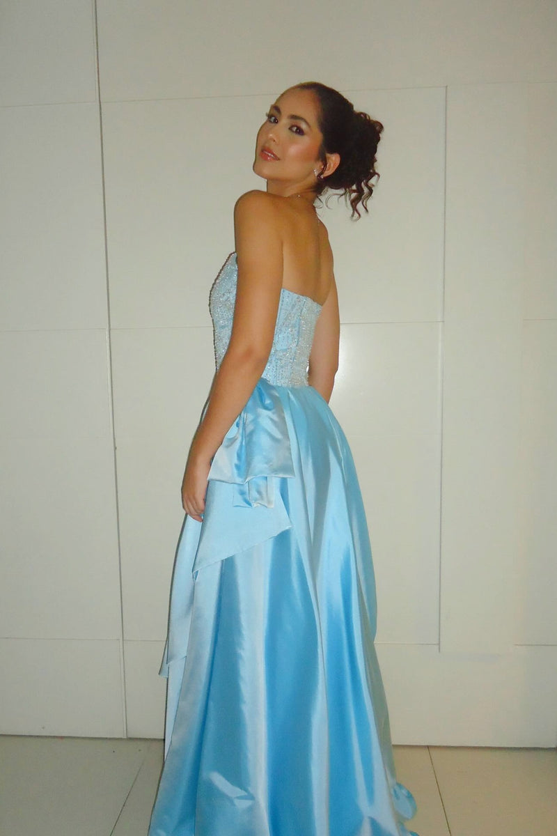 Misty Blue A-line Beaded Long Formal Dress with Side Slit