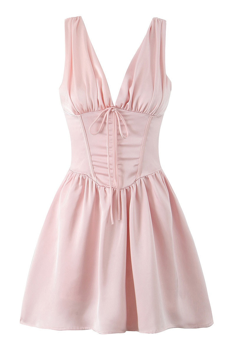 Deep Nude Off-shoulder Rhinestone Puffy Mini Dress
