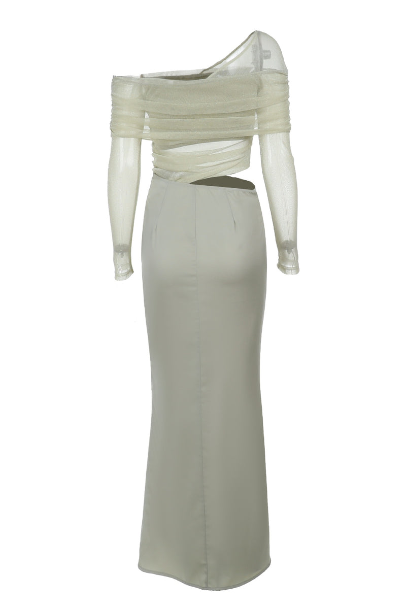 Sage Green Long Sleeves Asymmetrical Long Dress