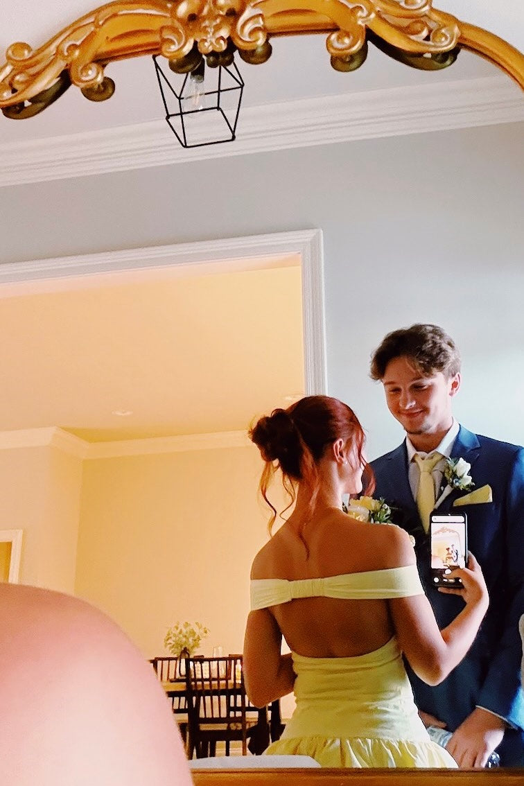Yellow Off-the-shoulder Long-Sleeve Mini Dress