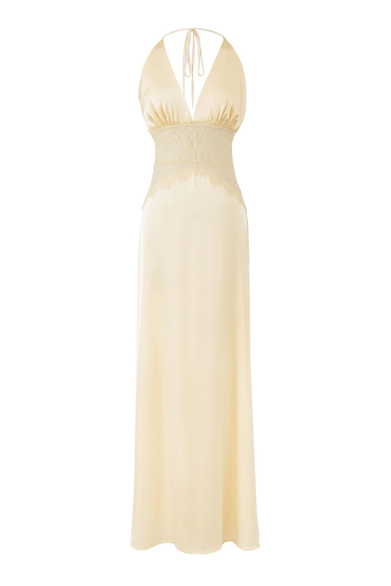 Yellow Satin Cut-Out A-Line Dress