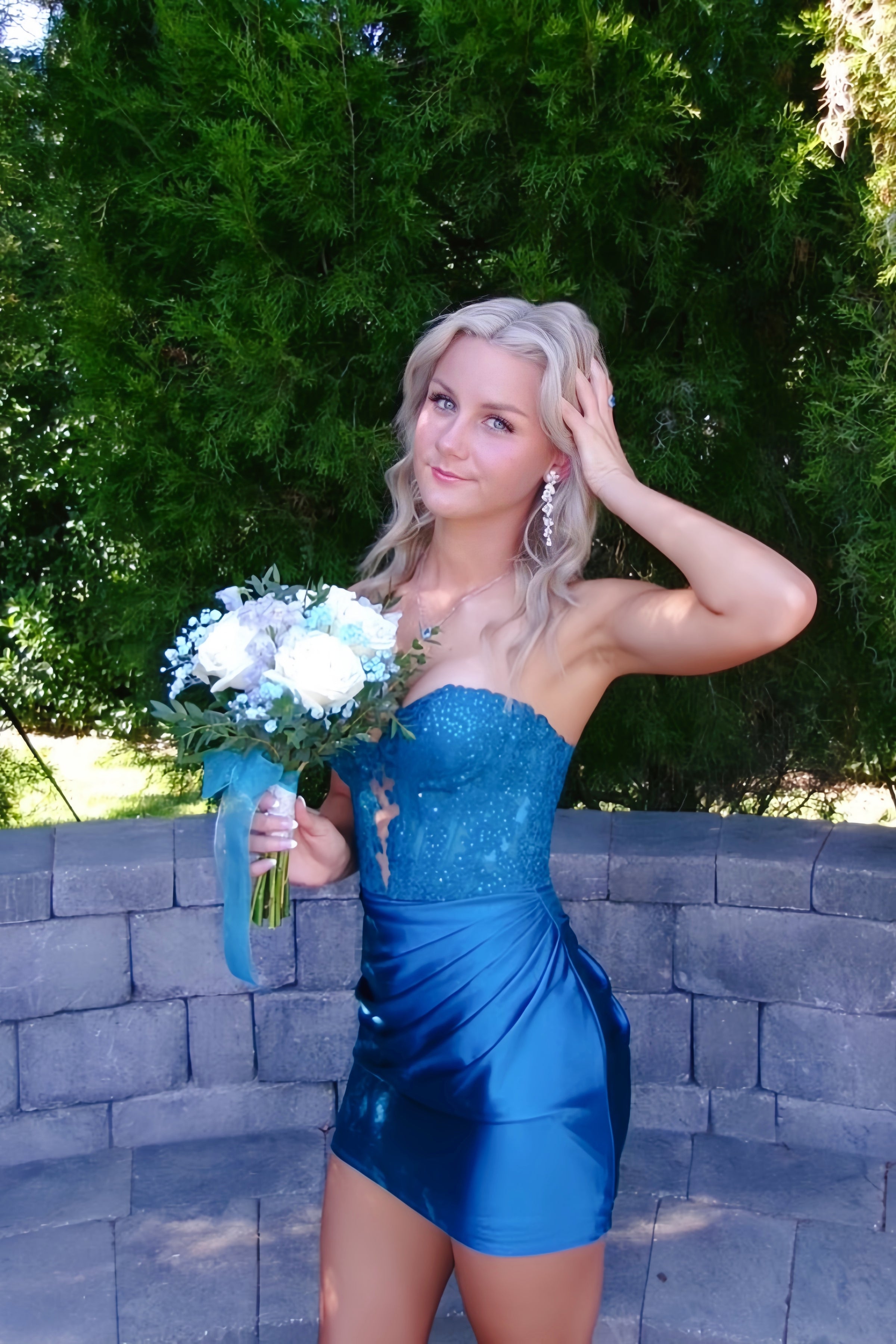 Sweetheart Black Appliques Ruched Tight Mini Dress