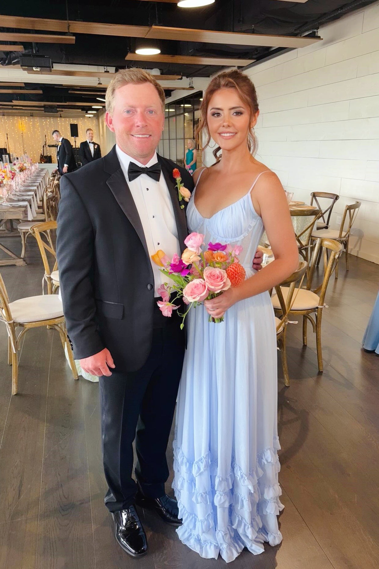 Blue V-Neck A-Line Bridesmaid Dress