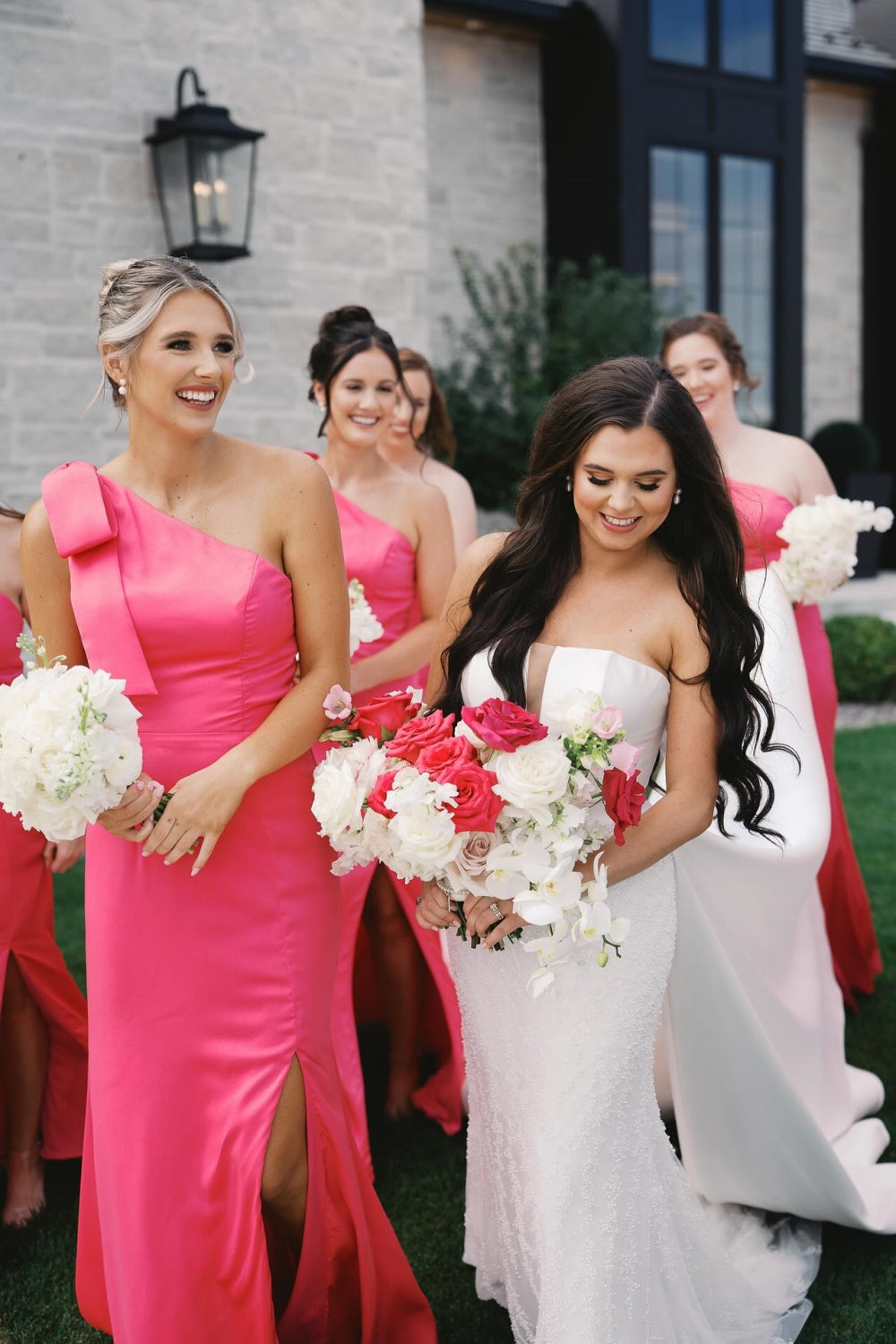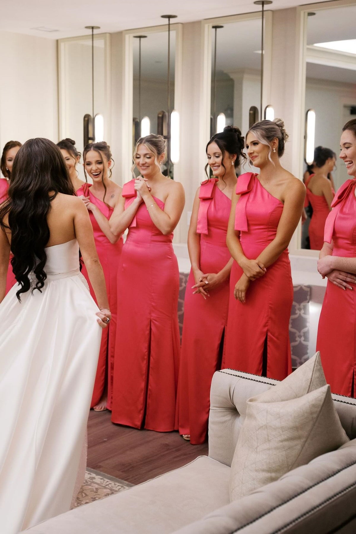 Bow One-Shoulder Hot Pink Satin Bridesmaid Dress