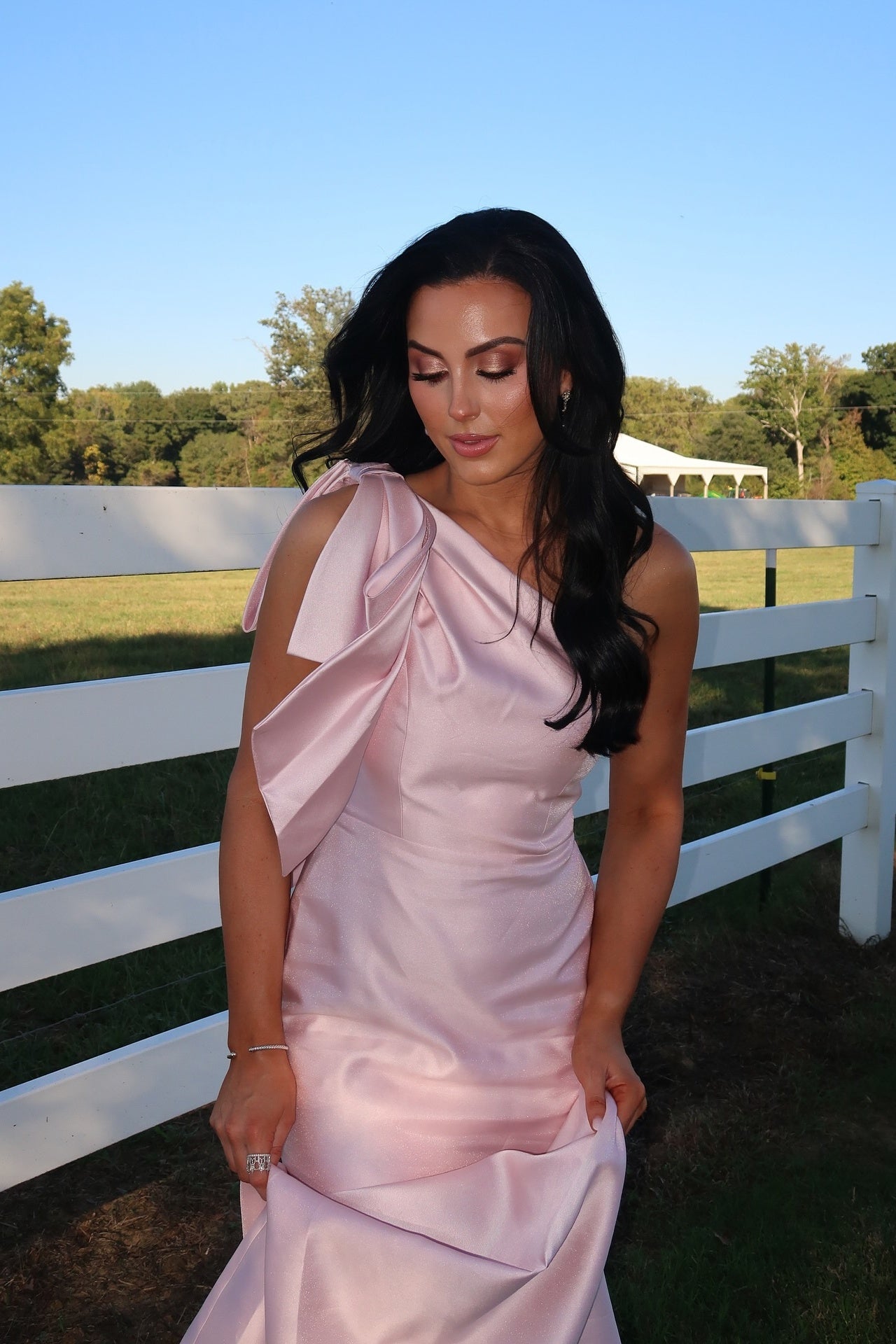 - One shoulder with bow detail