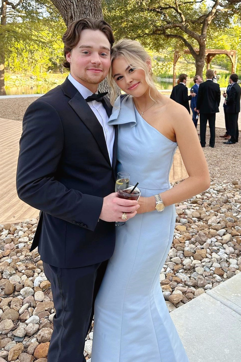 Elegant light blue satin bridesmaid dress featuring a flattering one-shoulder design with ruching detail and mermaid silhouette. Full length with zip-up back closure.