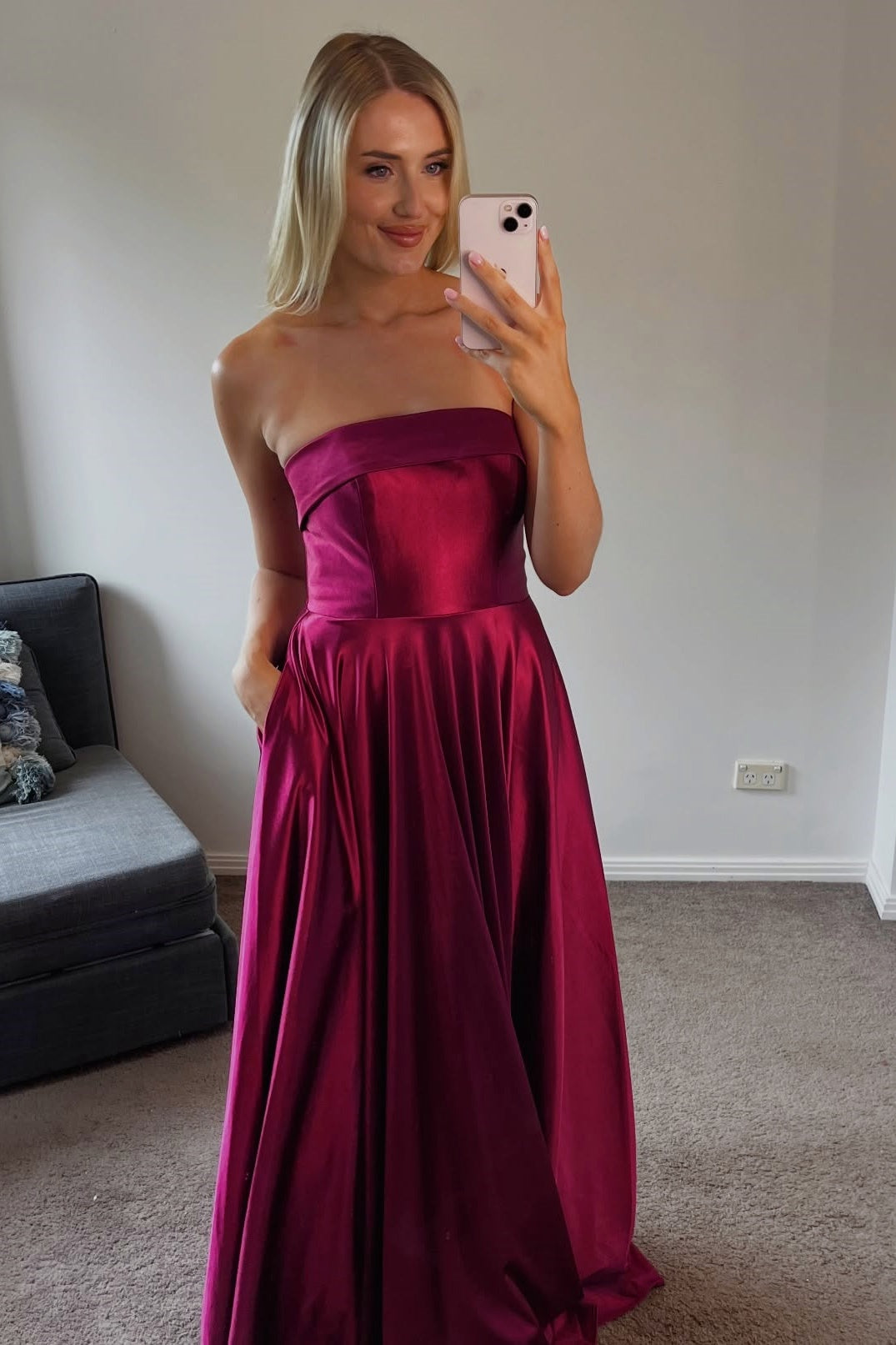 - Strapless neckline