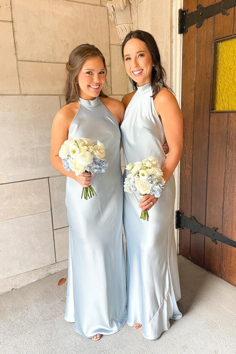 Halter Light Blue Fitted Long Bridesmaid Dress