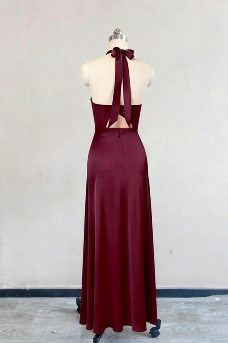 Fitted Burgundy Halter Neck Halter Dress