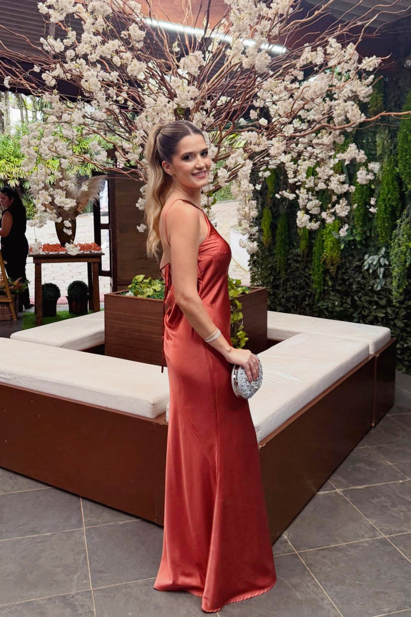 Rust Halter V Neck Chiffon Long Bridesmaid Dress