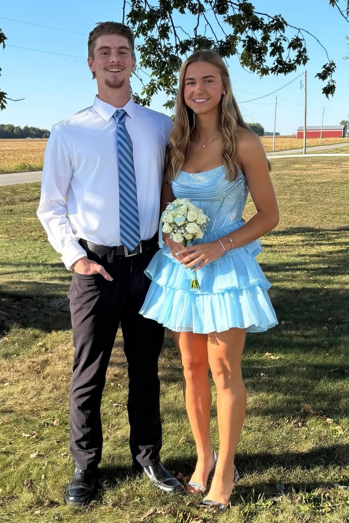 Beaded Light Blue Corset A-line Short Ruffle Dress
