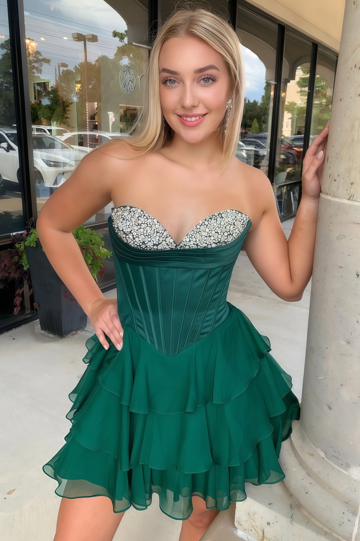 Beaded Sweetheart Navy Blue Corset Short Ruffle Dress