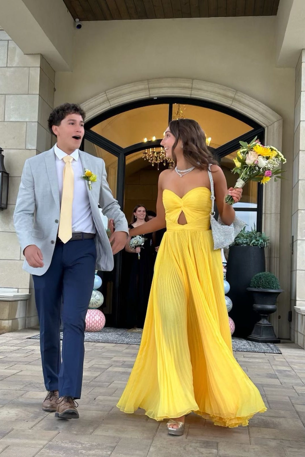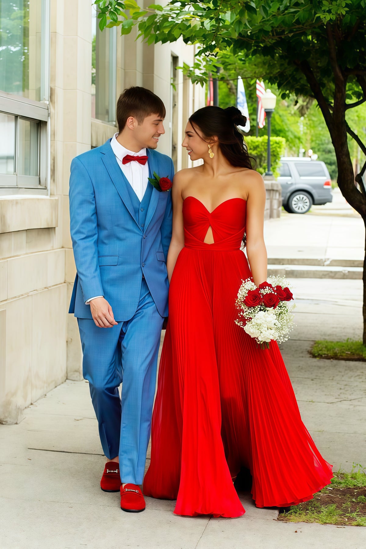 Hot Pink Sweeheart Cutout Pleated Long Party Dress