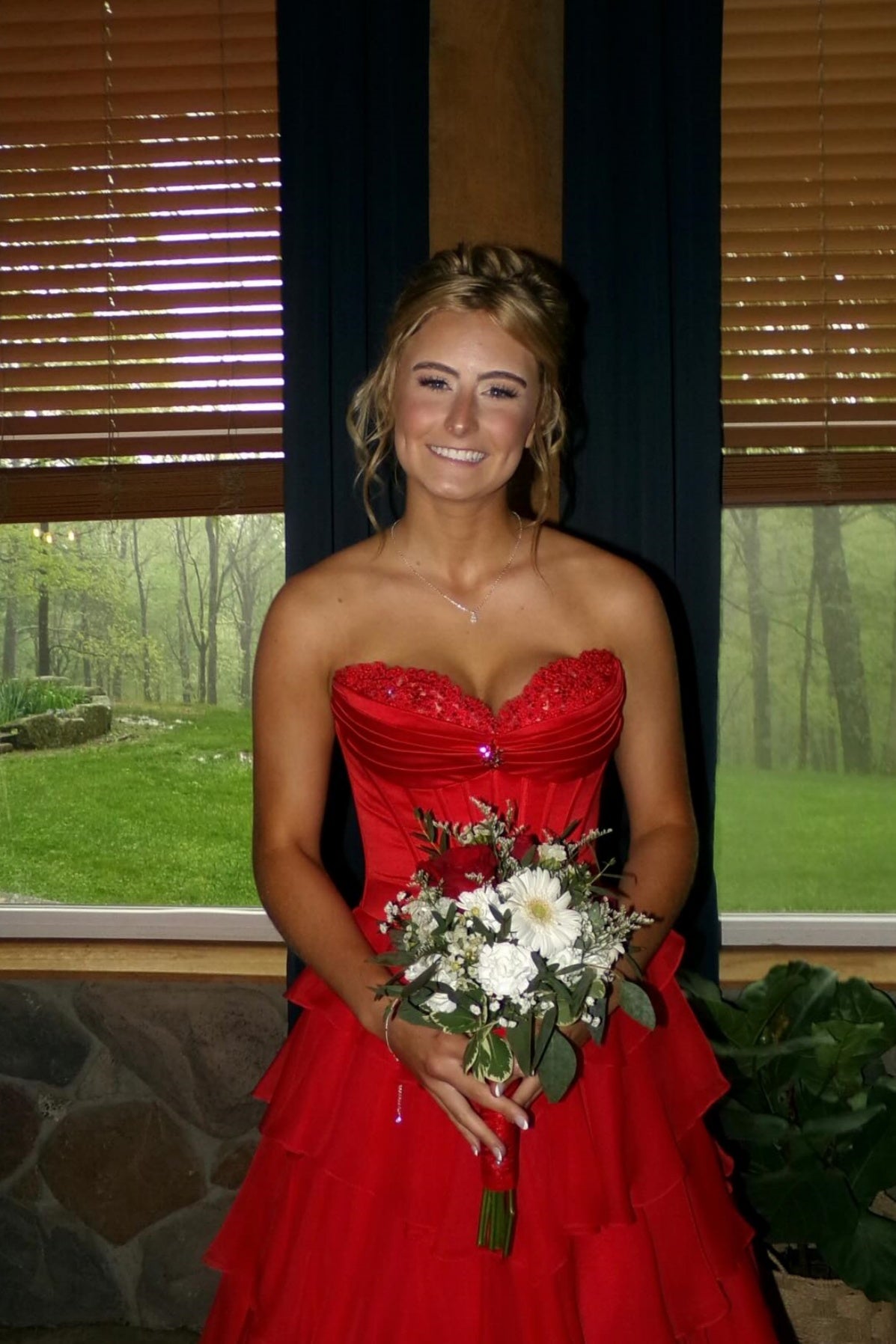 Red Sweetheart Slit Ruffle A-line Prom Dress