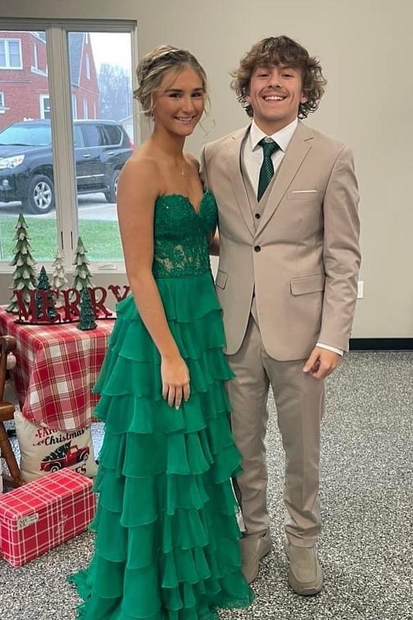 Sweetheart Yellow Lace Tiered Ruffle Prom Dress