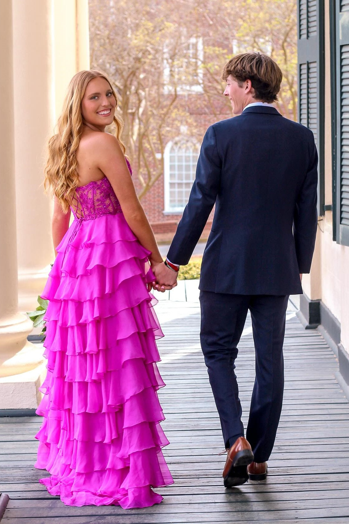 Sweetheart Yellow Lace Tiered Ruffle Prom Dress