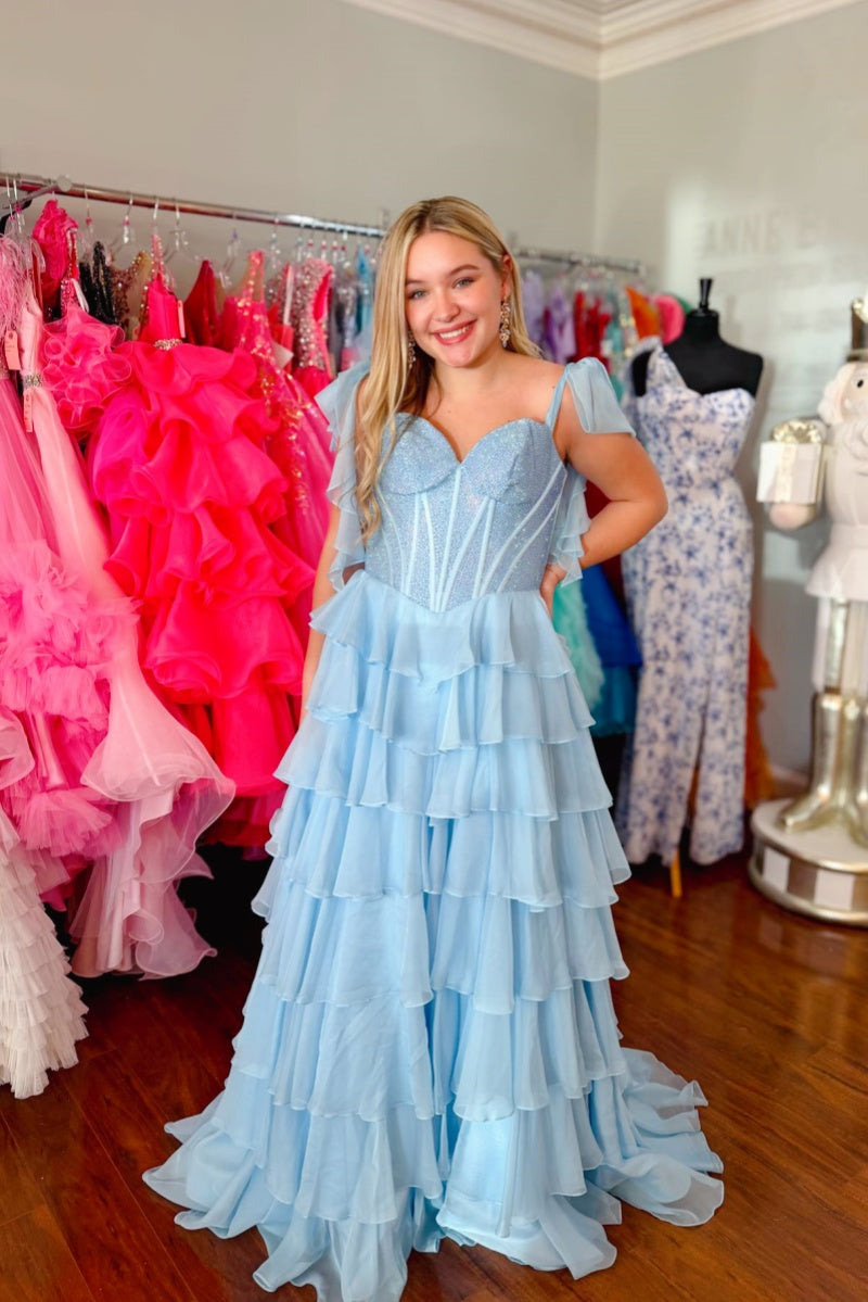Yellow Beaded Ruffle Side-Slit A-line Gown