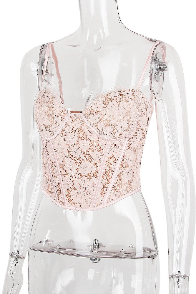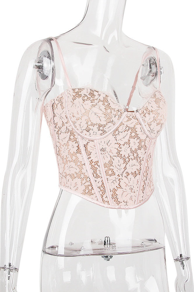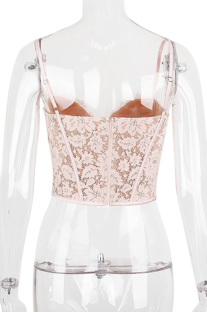 Crafted from spandex, this bandeau top features a floral pattern with a figure-hugging bodycon fit. It showcases a square neckline with spaghetti straps, complemented by a lace-up back and delicate lace trim for an elegant finish.