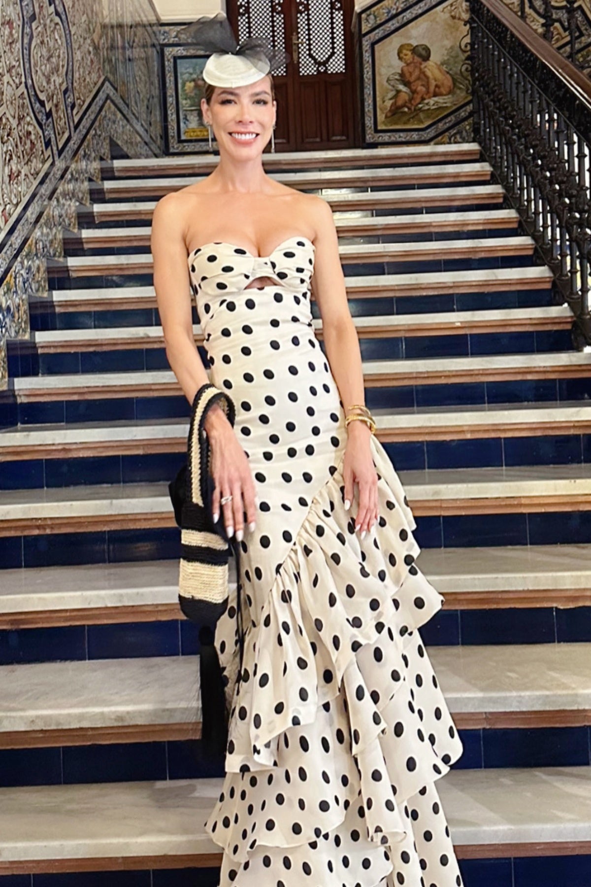 White Polka Dots Cutout Fitted Tiered Dress