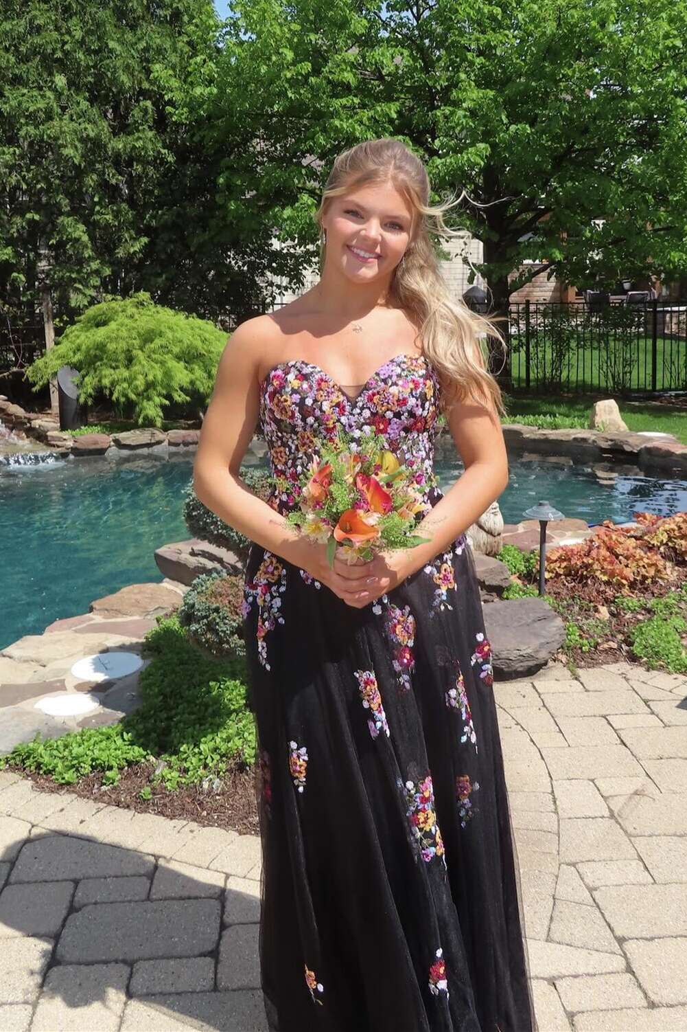 Strapless Black A-line Sequin Embroidery Long Formal Dress