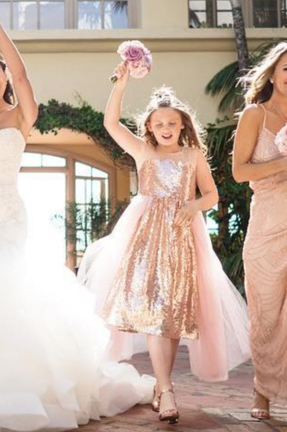 Pink Sequin Tulle A-Line Flower Girl Dress