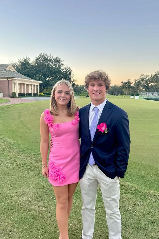Straps Hot Pink Appliques Short A-line Homecoming Dress