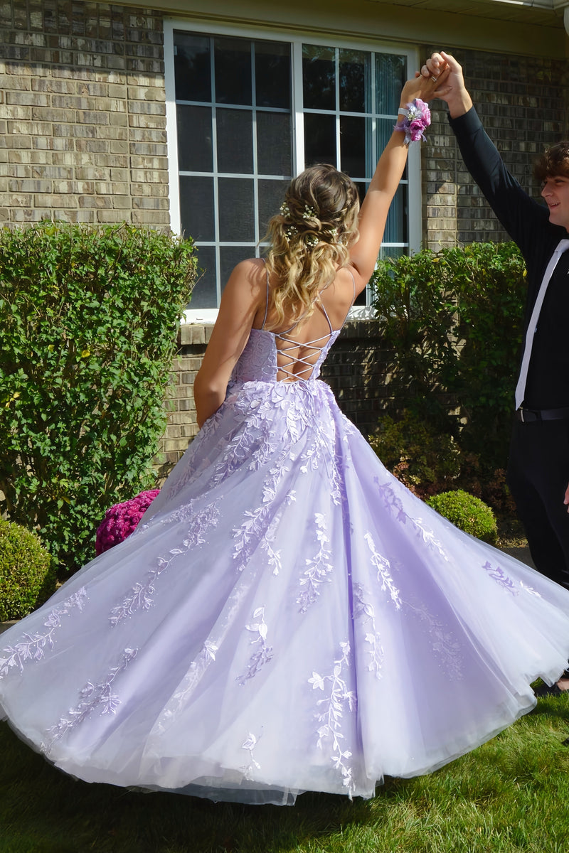 Straps Lavender Lace Appliques Mermaid Long Formal Dress