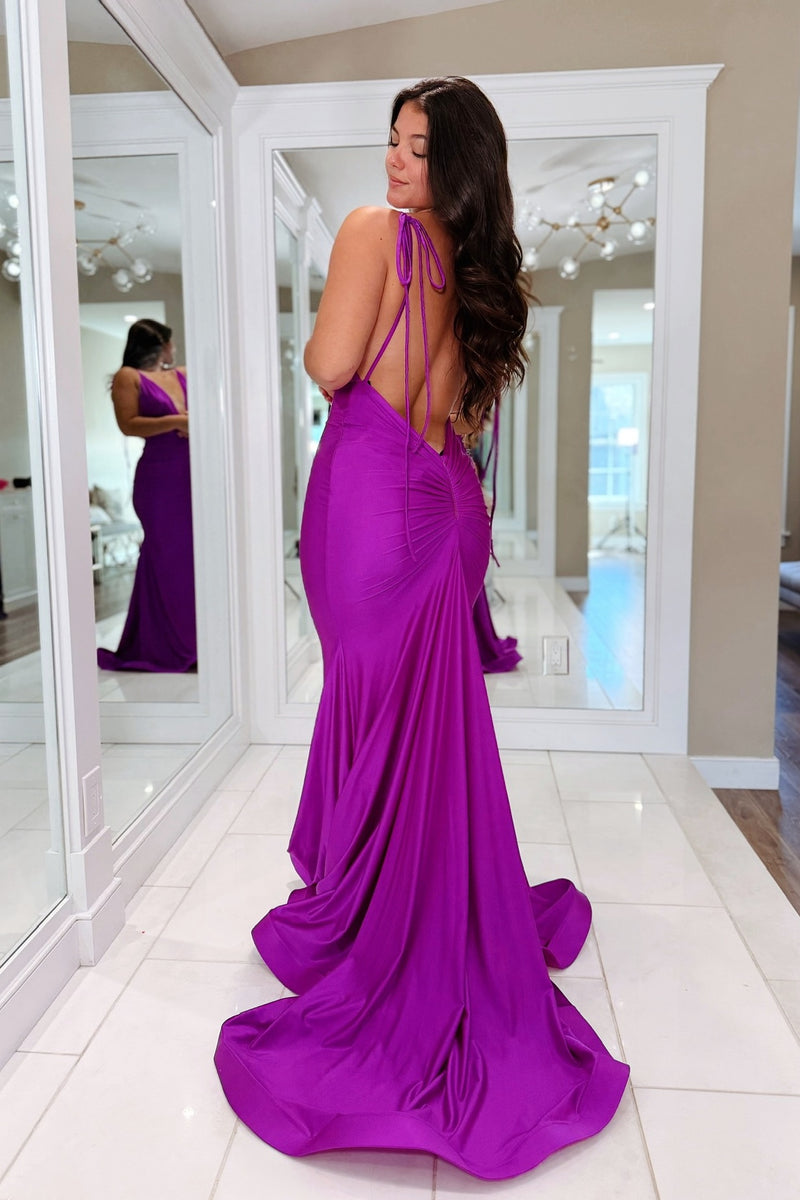 Keyhole Purple Metallic Ruched Long Formal Dress