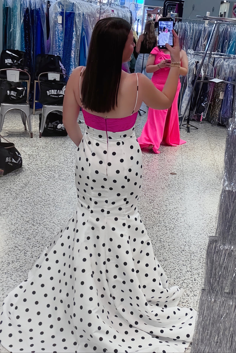 White Polka Dot Spliced with Magenta Mermaid Dress