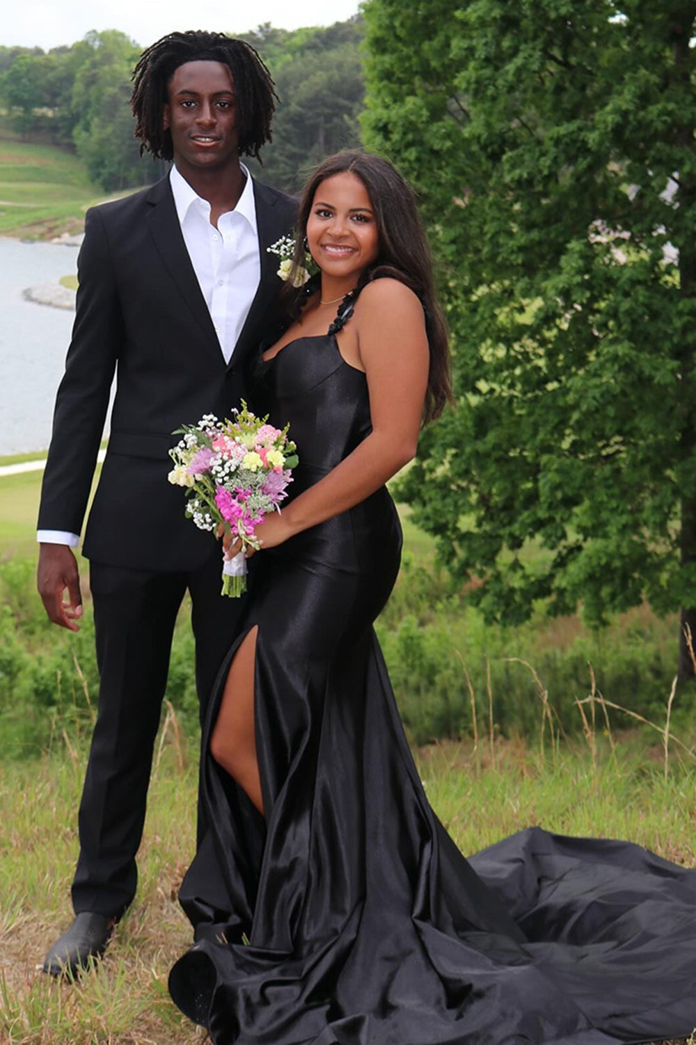 Fuchsia Satin Mermaid Flowers Prom Dress with Slit