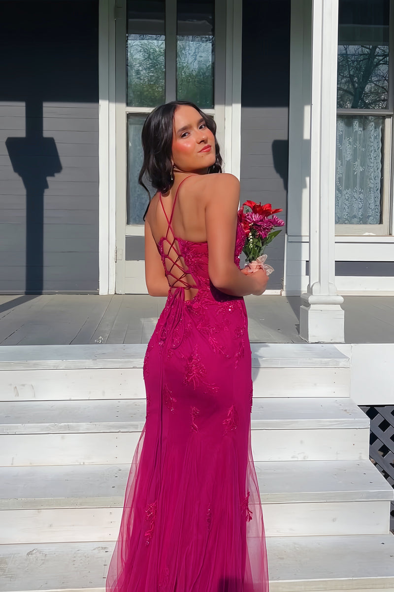 Fuchsia Sequin Embroidery Mermaid Long Prom Dress
