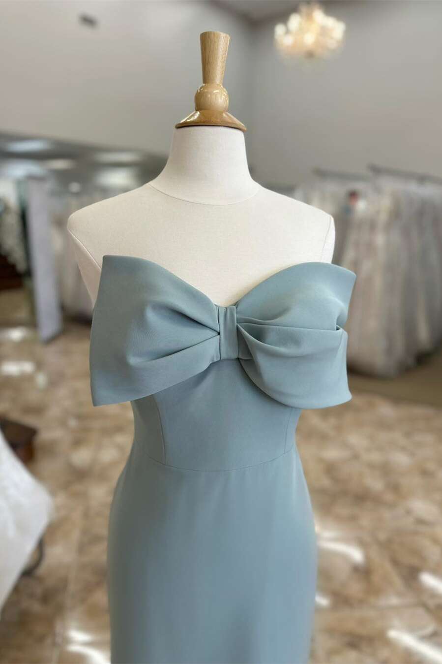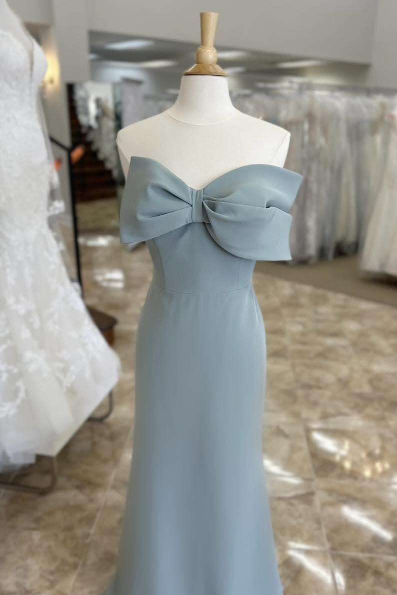 Bow Neck Grey Fitted Zipper Back Long Mother of the Bride Dress