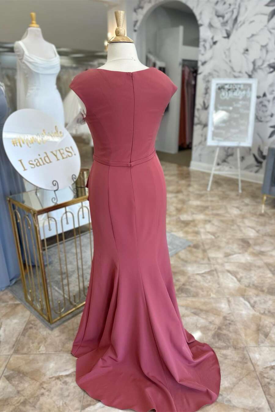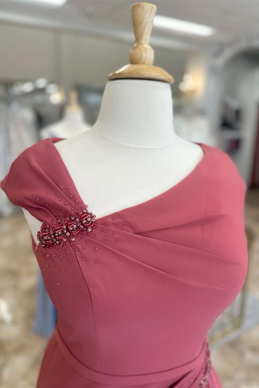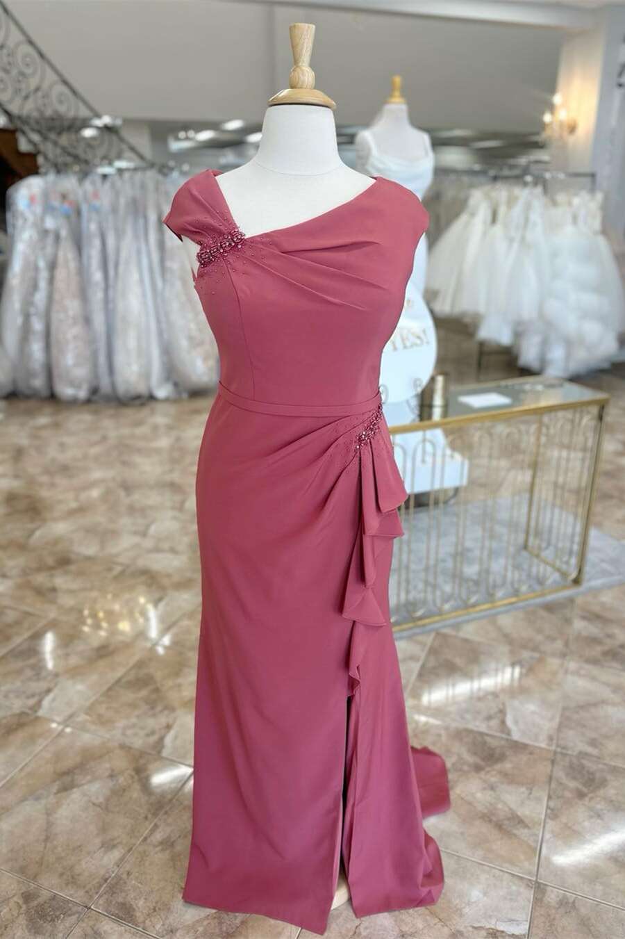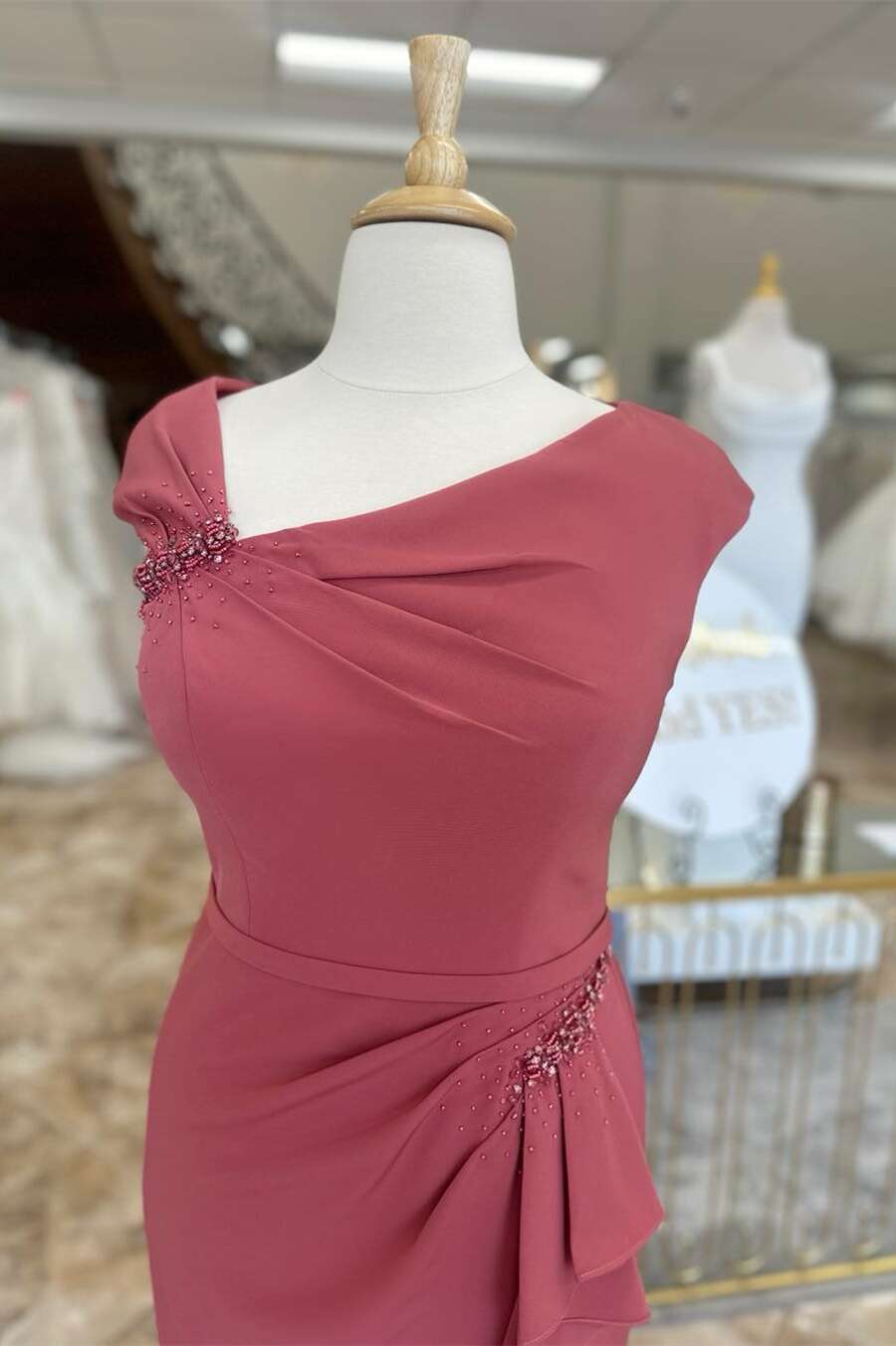 Dark Red Sleeveless Sequin Ruffle Mother of the Bride Dress with Slit