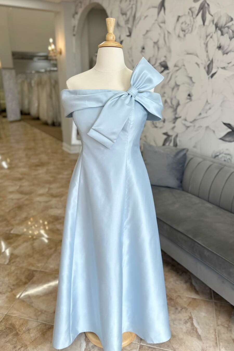 Strapless Light Blue Bow Neck Long Mother of the Bride Dress
