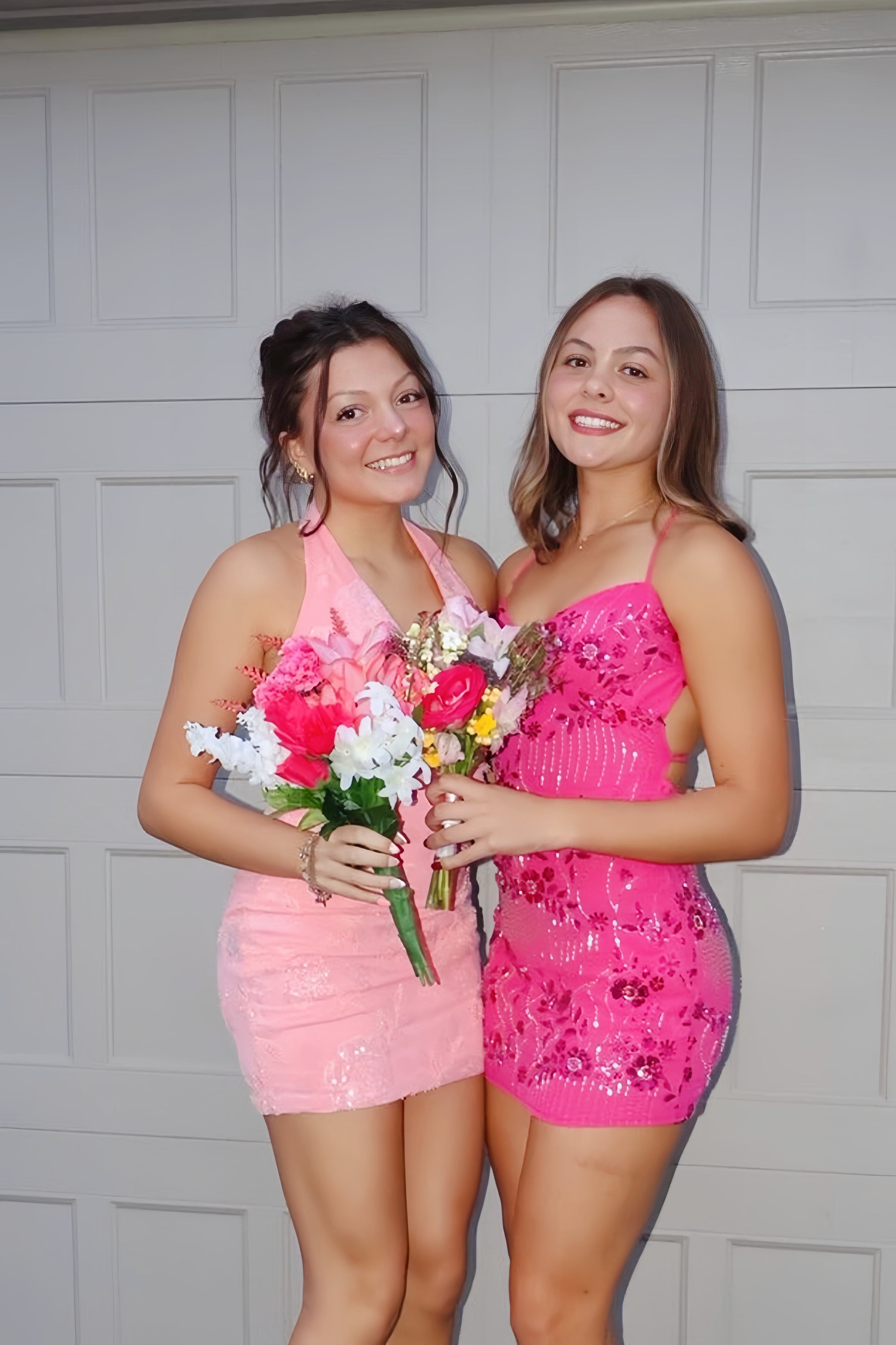 Crafted from premium polyester with a flattering fitted silhouette, this above-knee homecoming dress features elegant spaghetti straps and a sophisticated neckline. The distinctive back bow accent complements the luxurious sequin design, while meticulous beaded embellishments add dimensional texture and refined glamour.