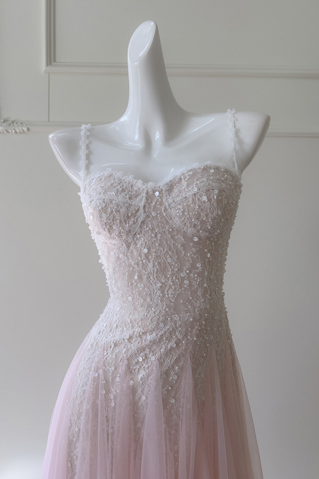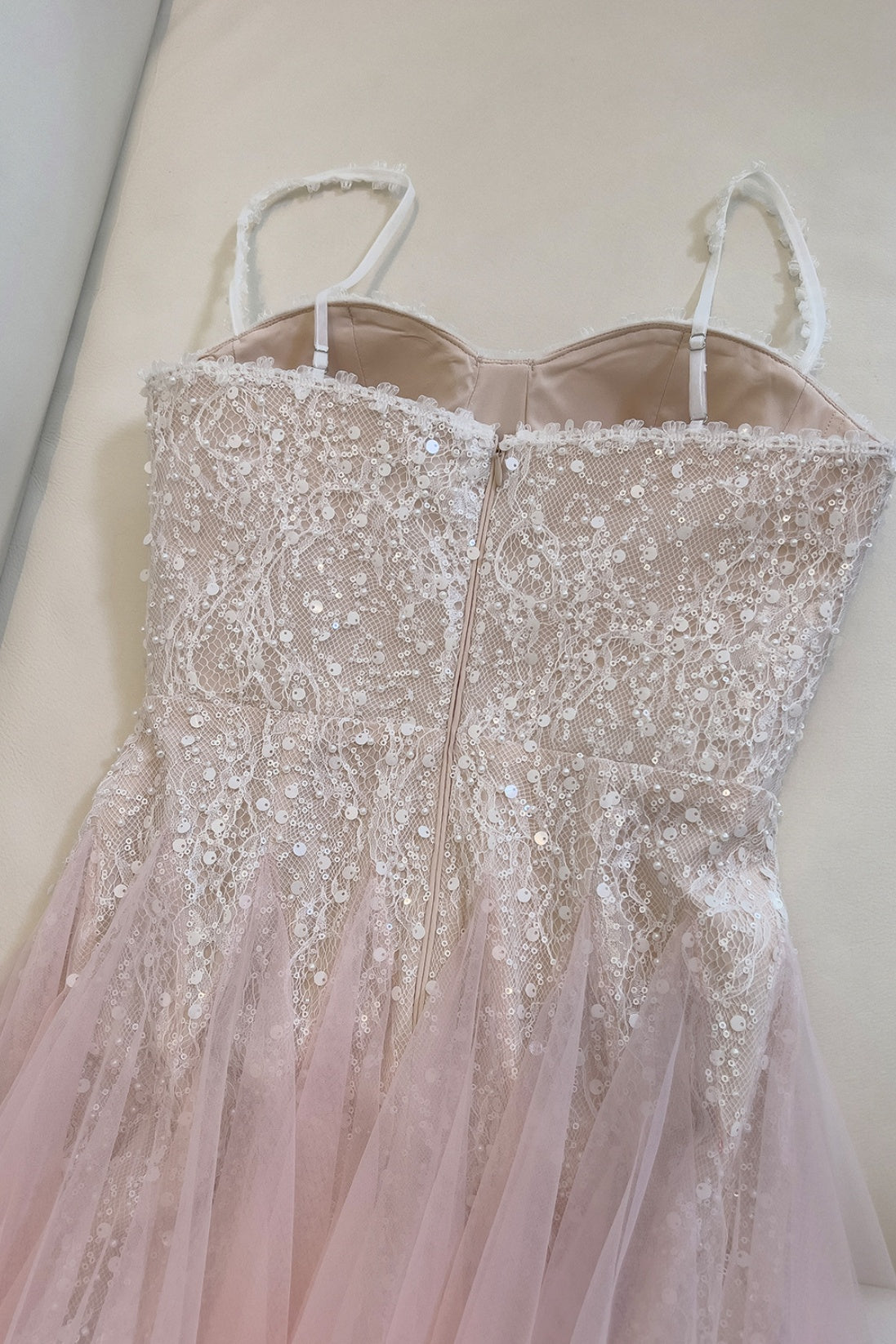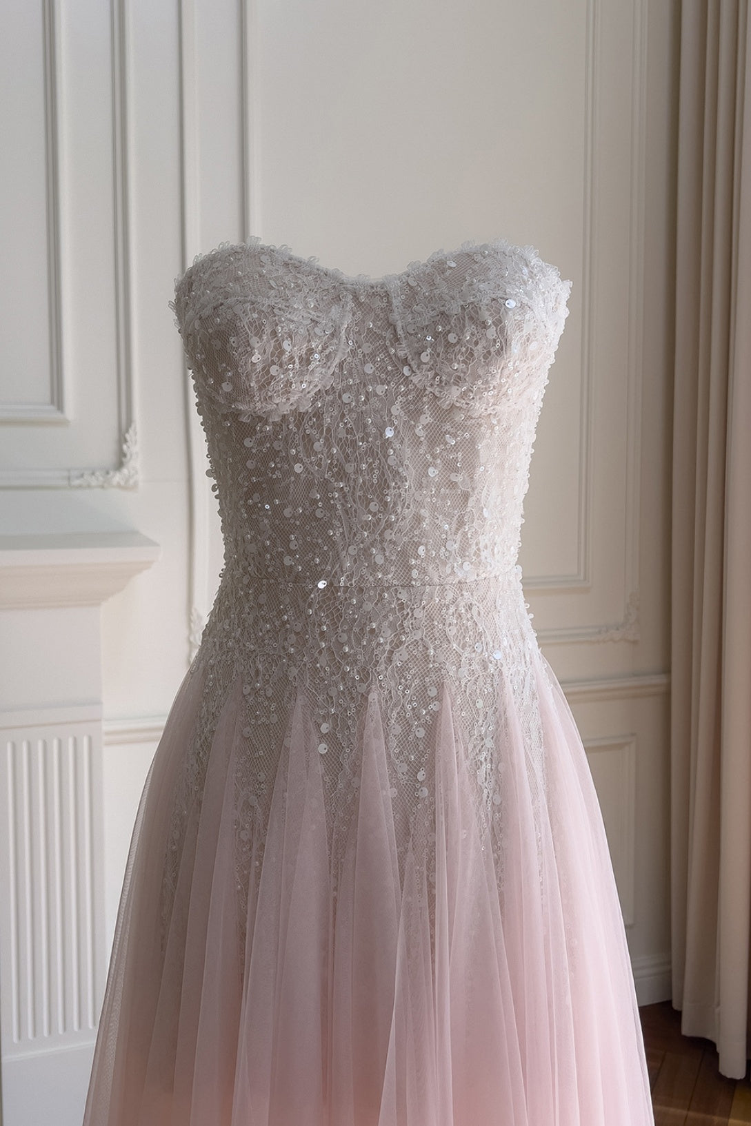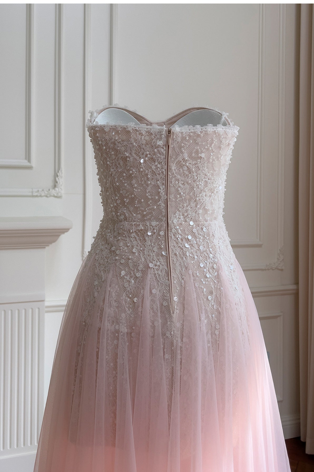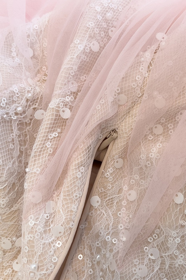 Cherry Blossom Pink Sweetheart Sequin A-line Dress