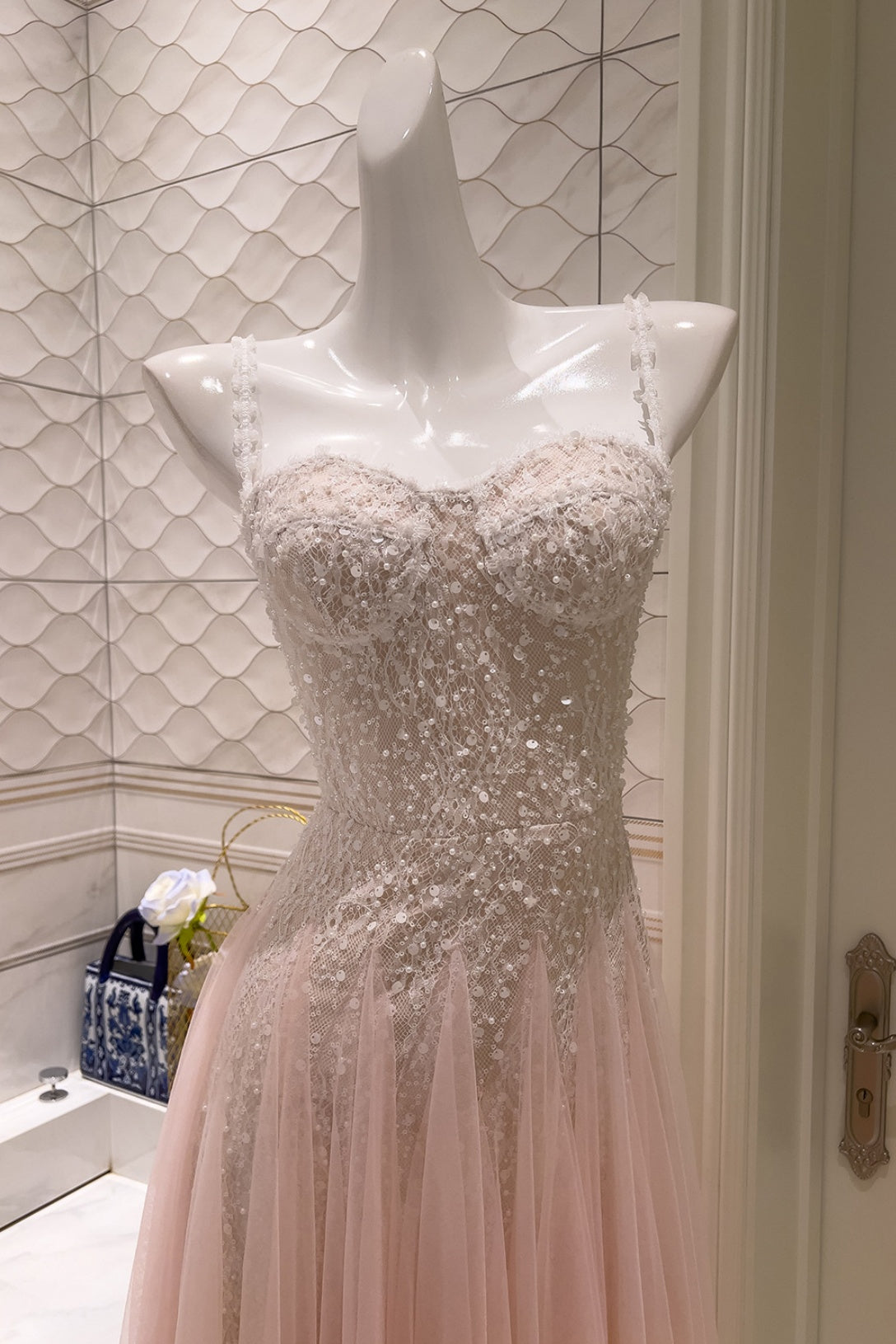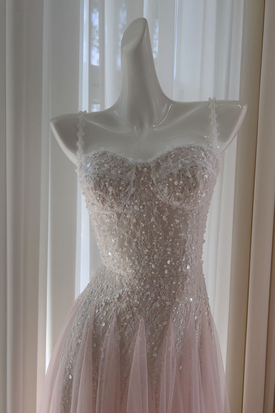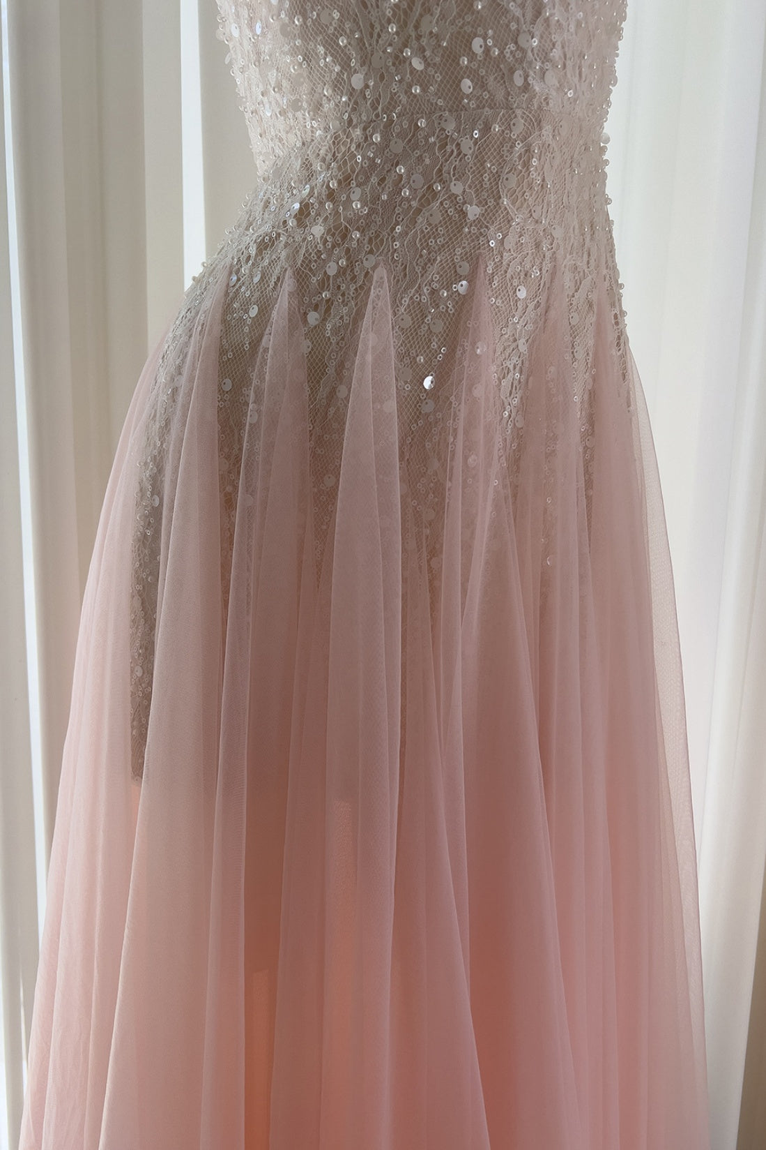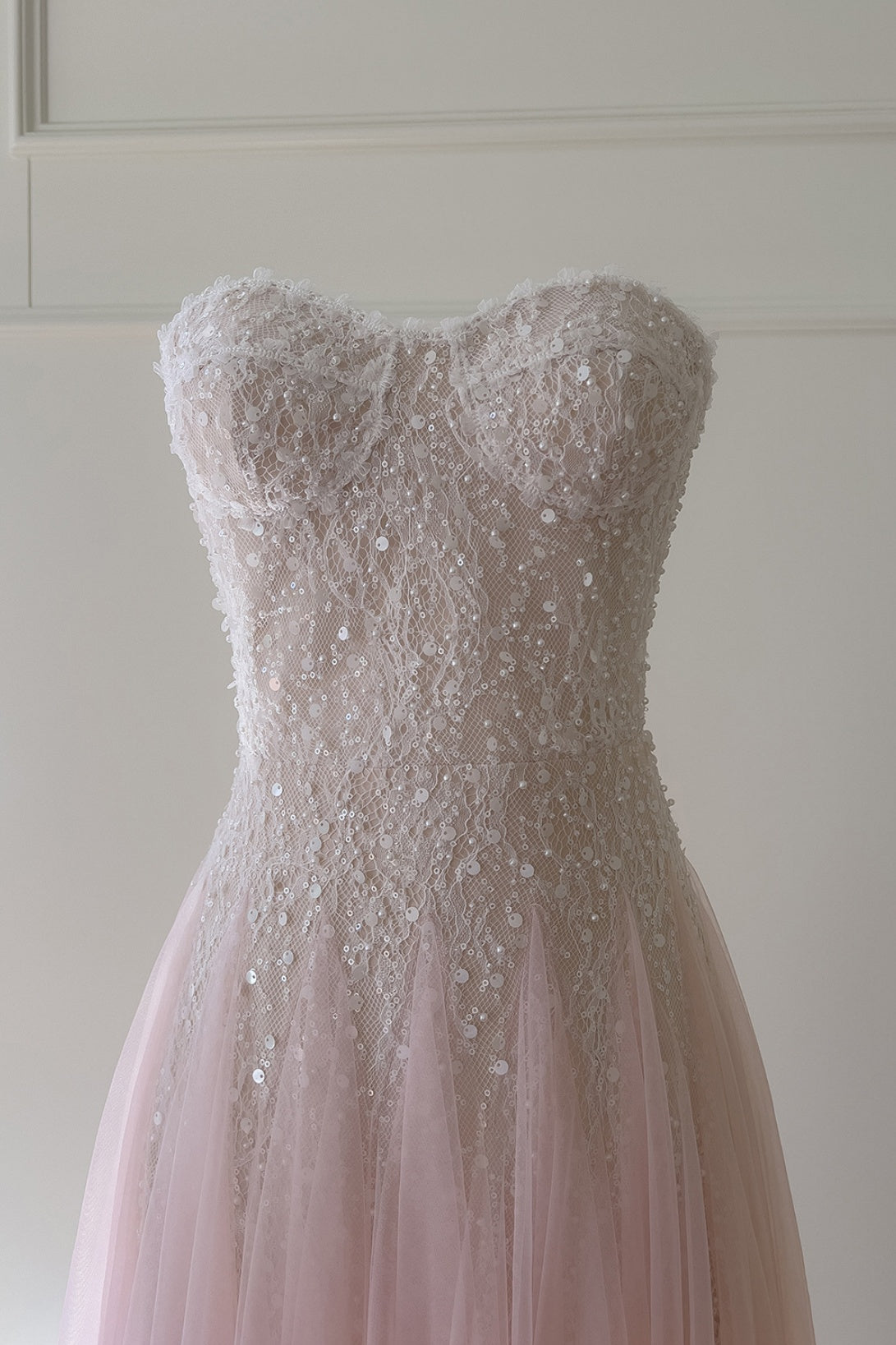 Cherry Blossom Pink Sweetheart Sequin A-line Dress