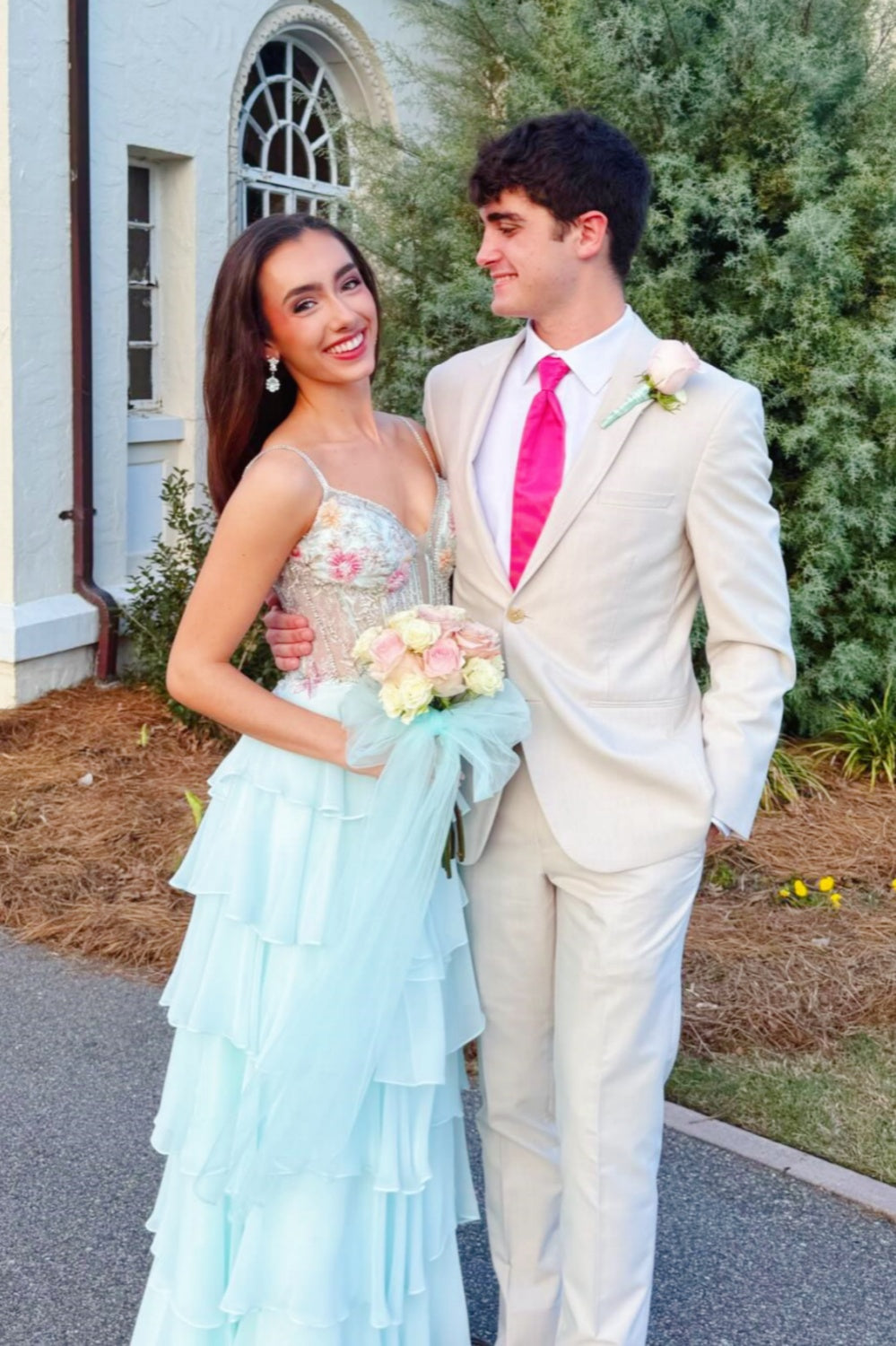 - Spaghetti straps with V-neckline