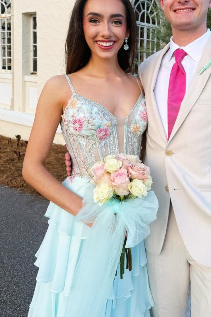 Baby Blue Ruffle A-Line Chiffon Dress