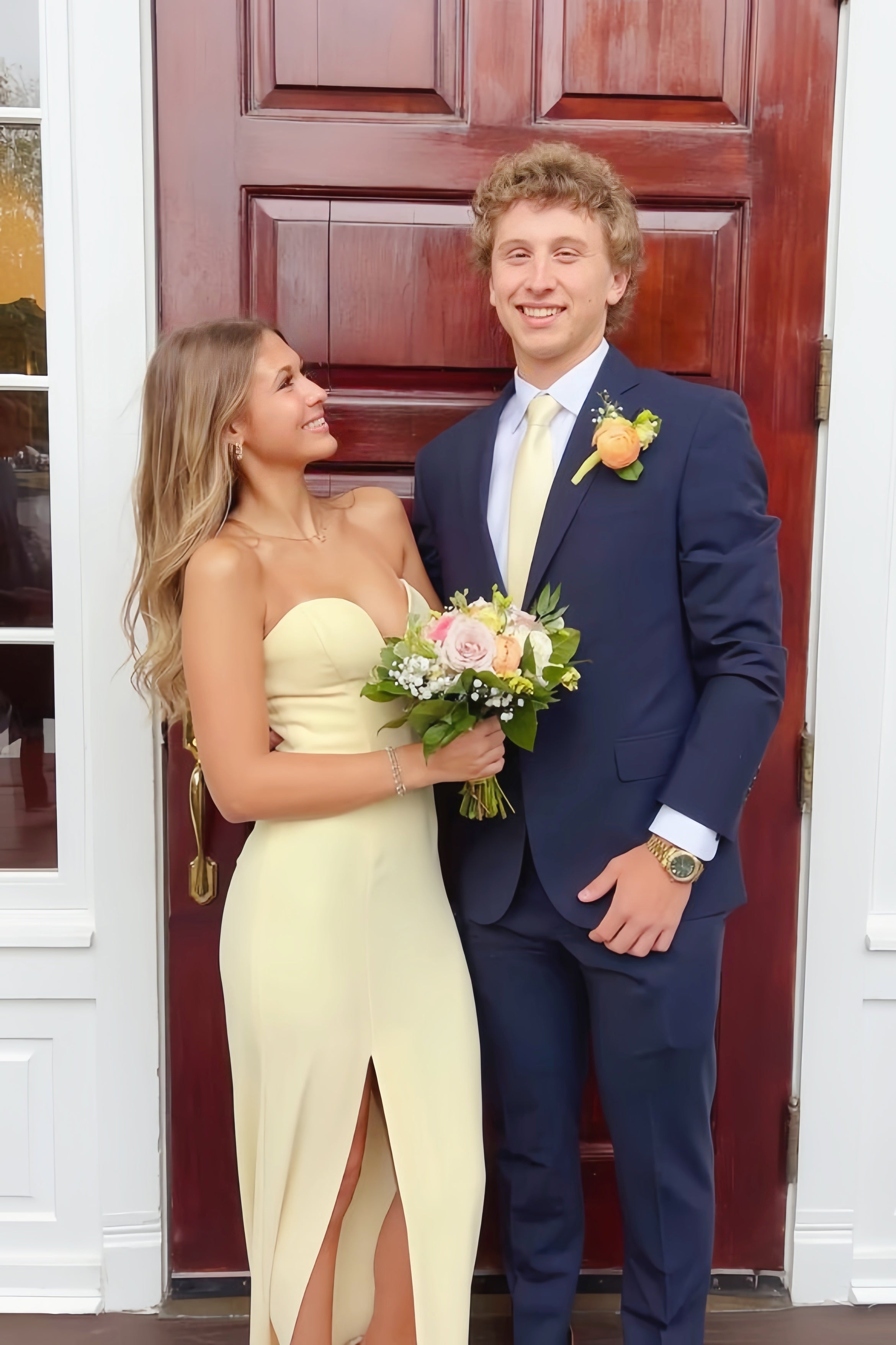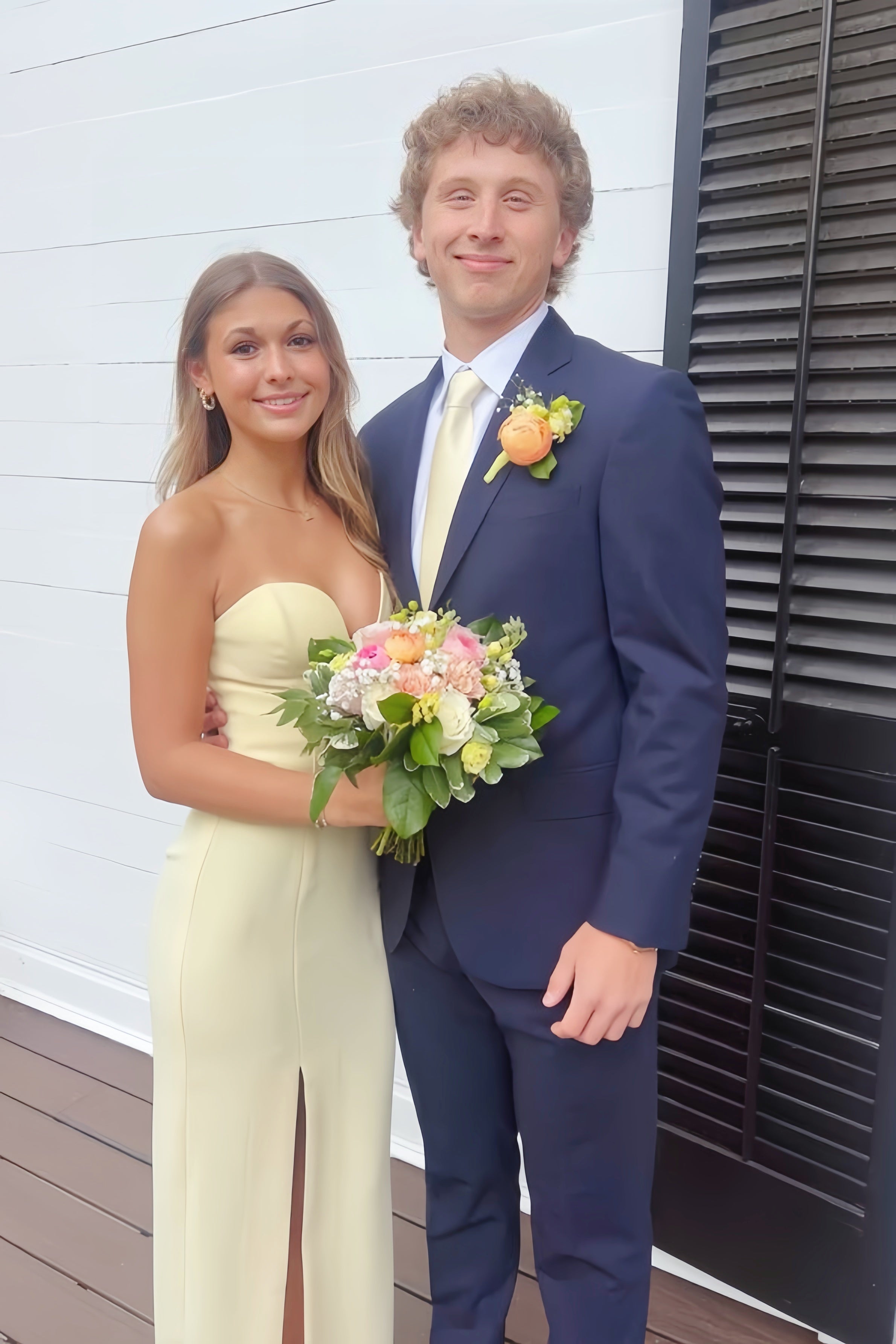 Strapless V-neck Yellow Fitted Floor-length Dress