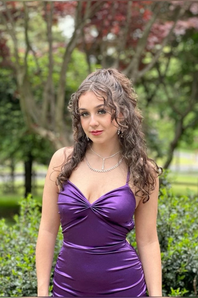 Purple Halter Tie V-neck Long Dress