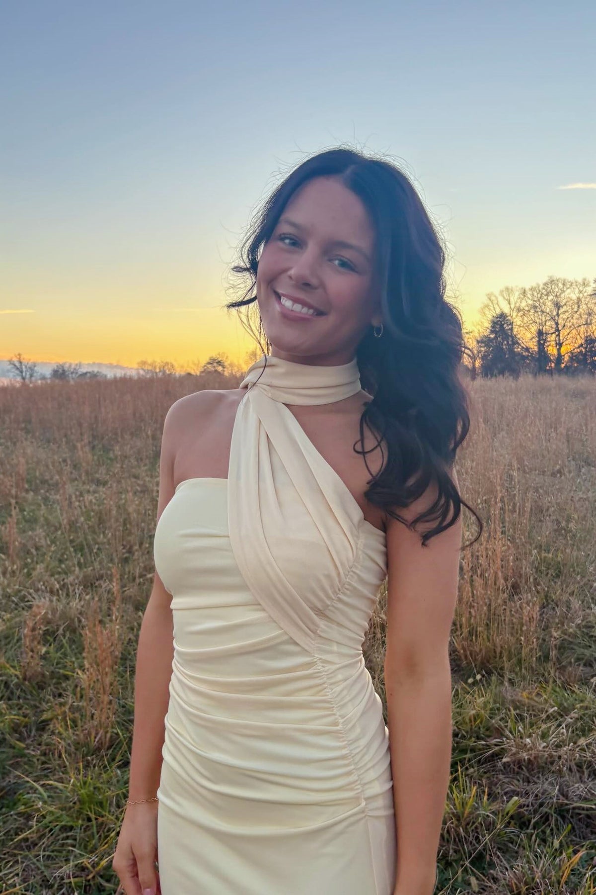 Light Yellow Fitted One-Shoulder Stretchy Dress