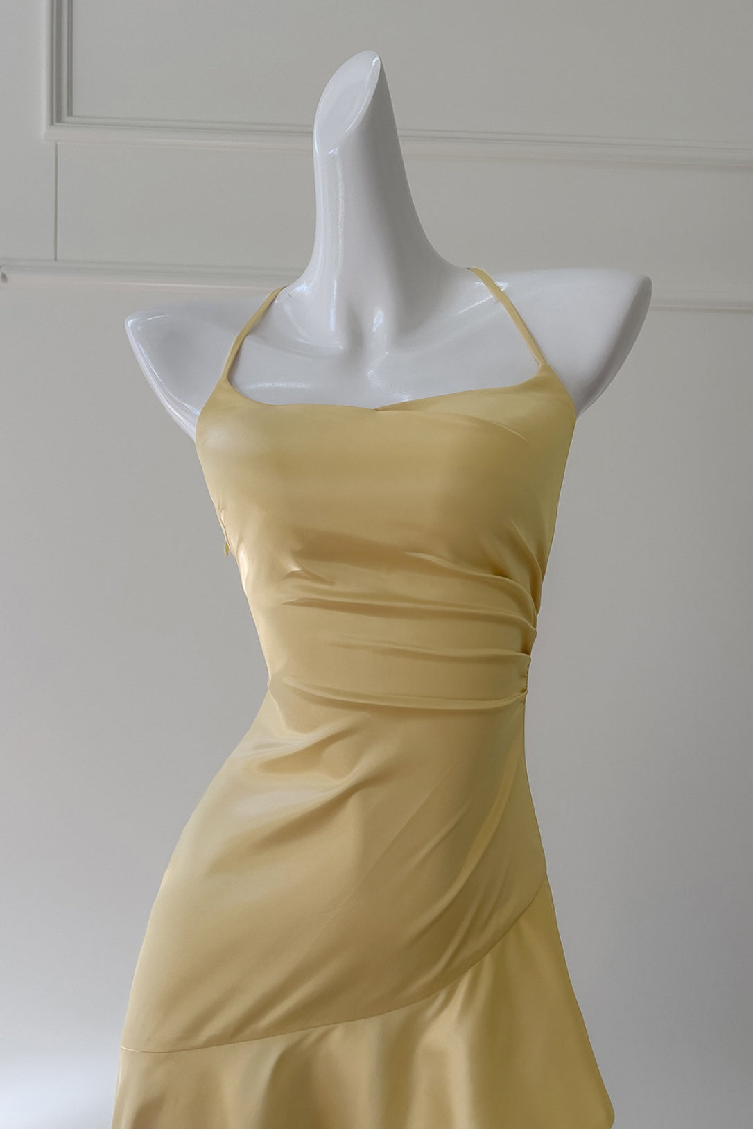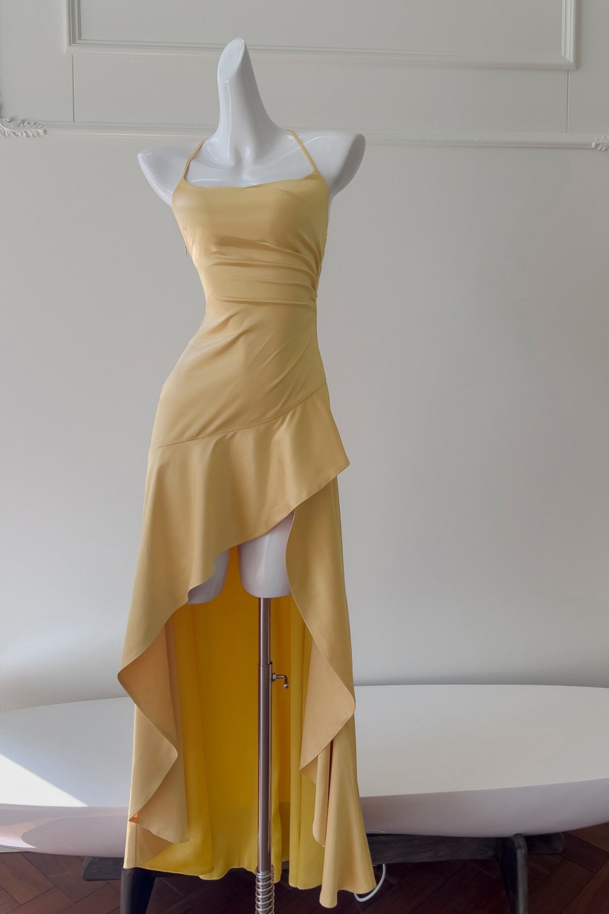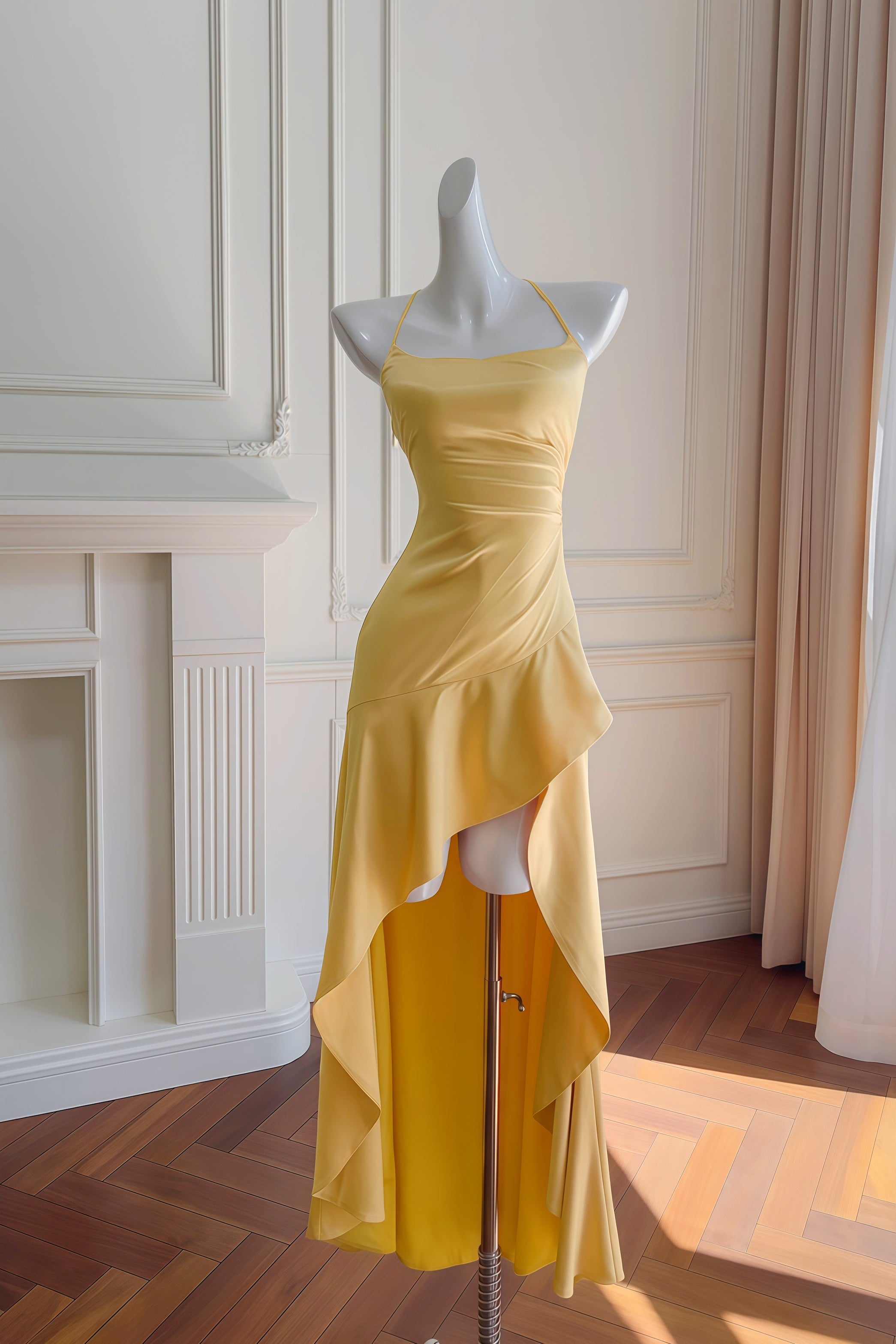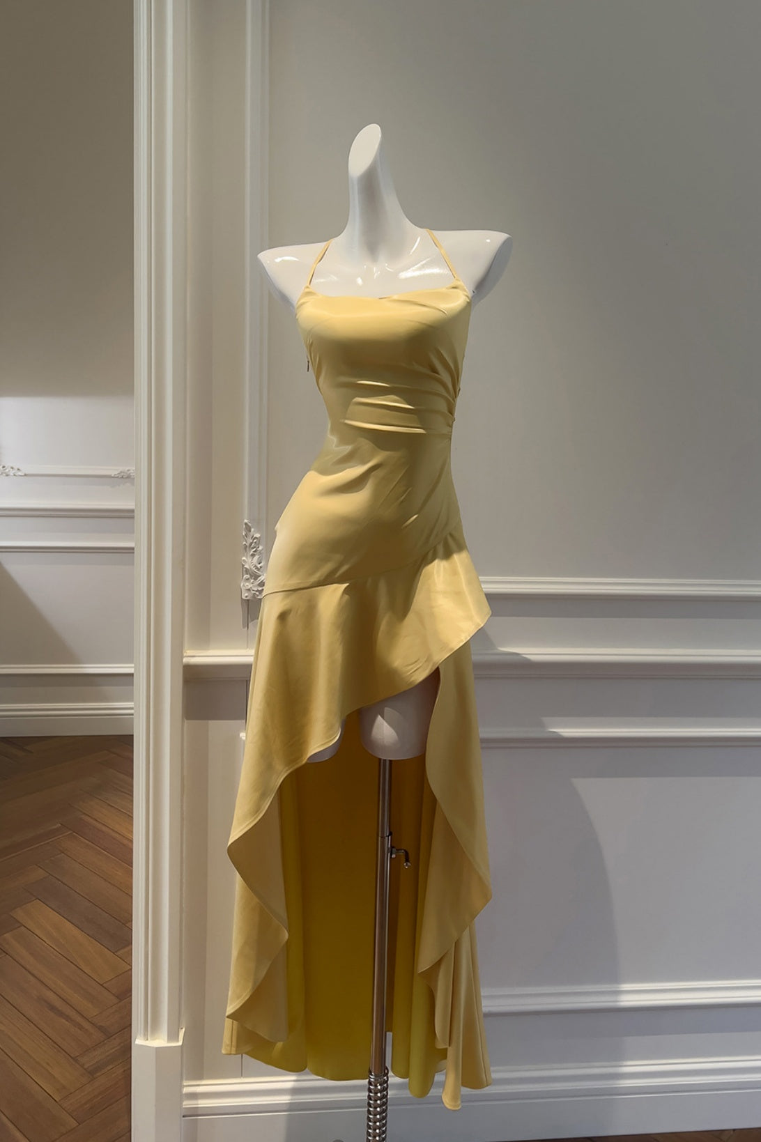 Yellow Halter Asymmetrical Ruffled A-line Dress