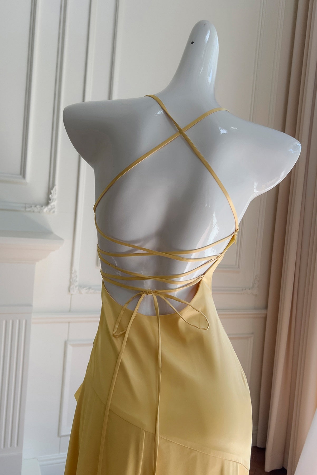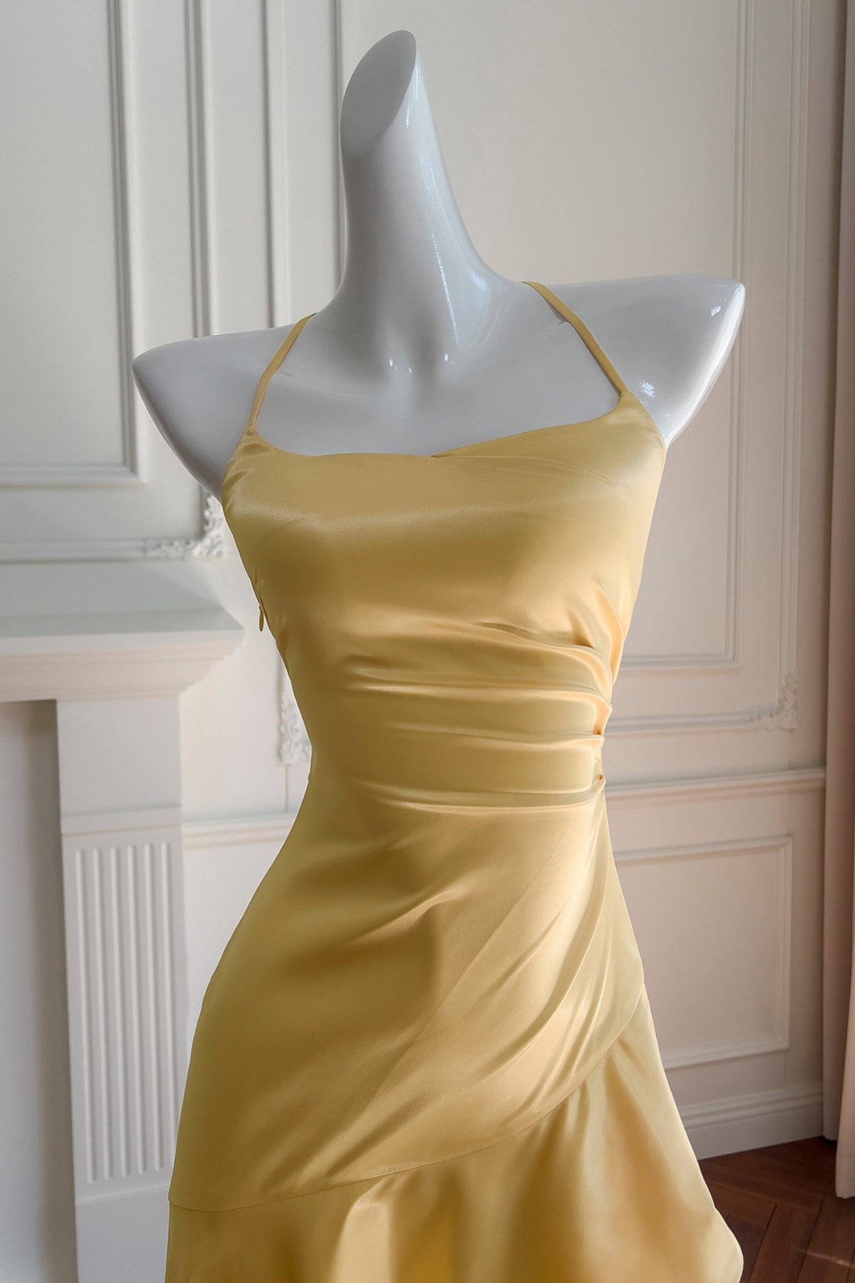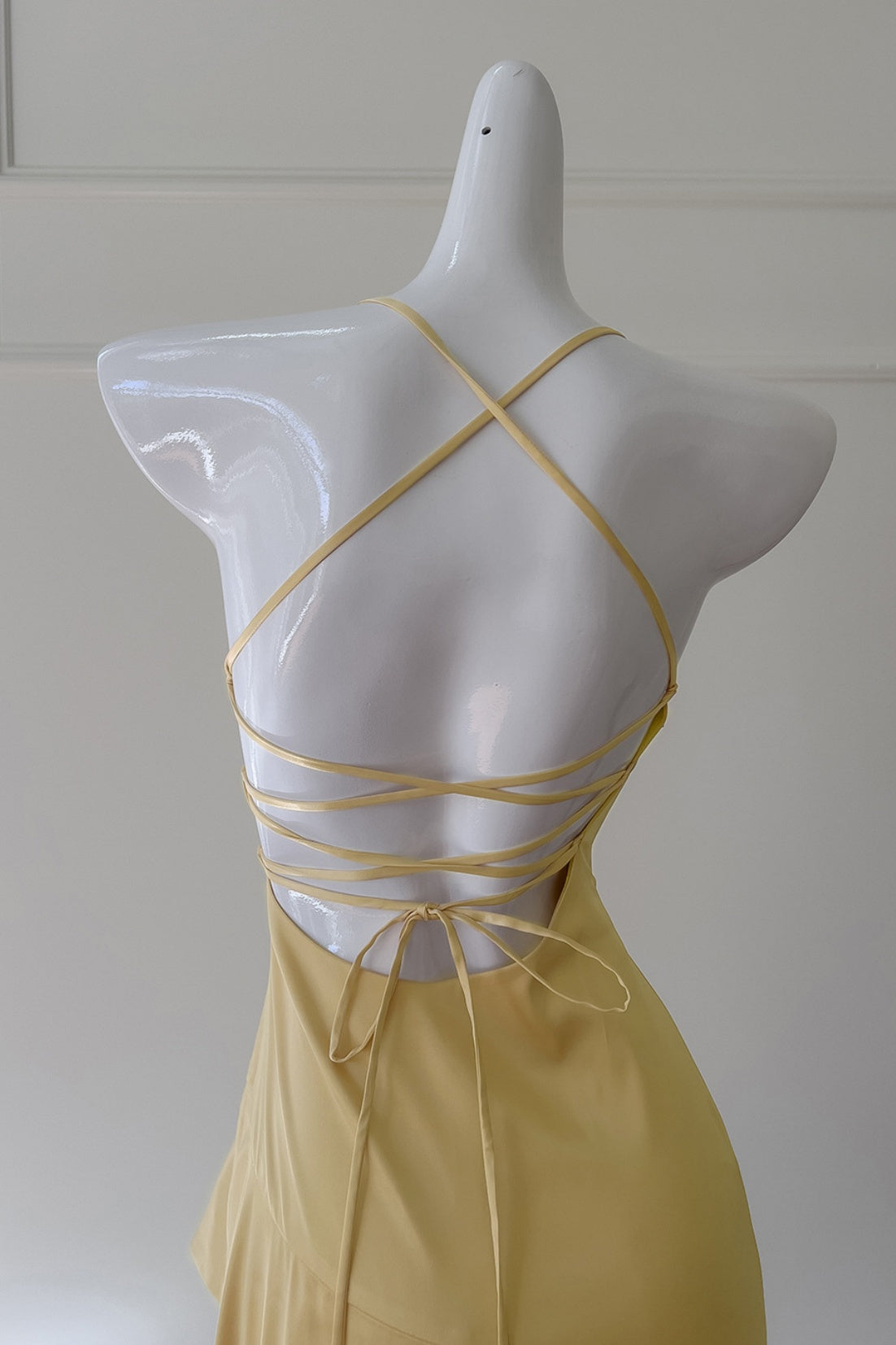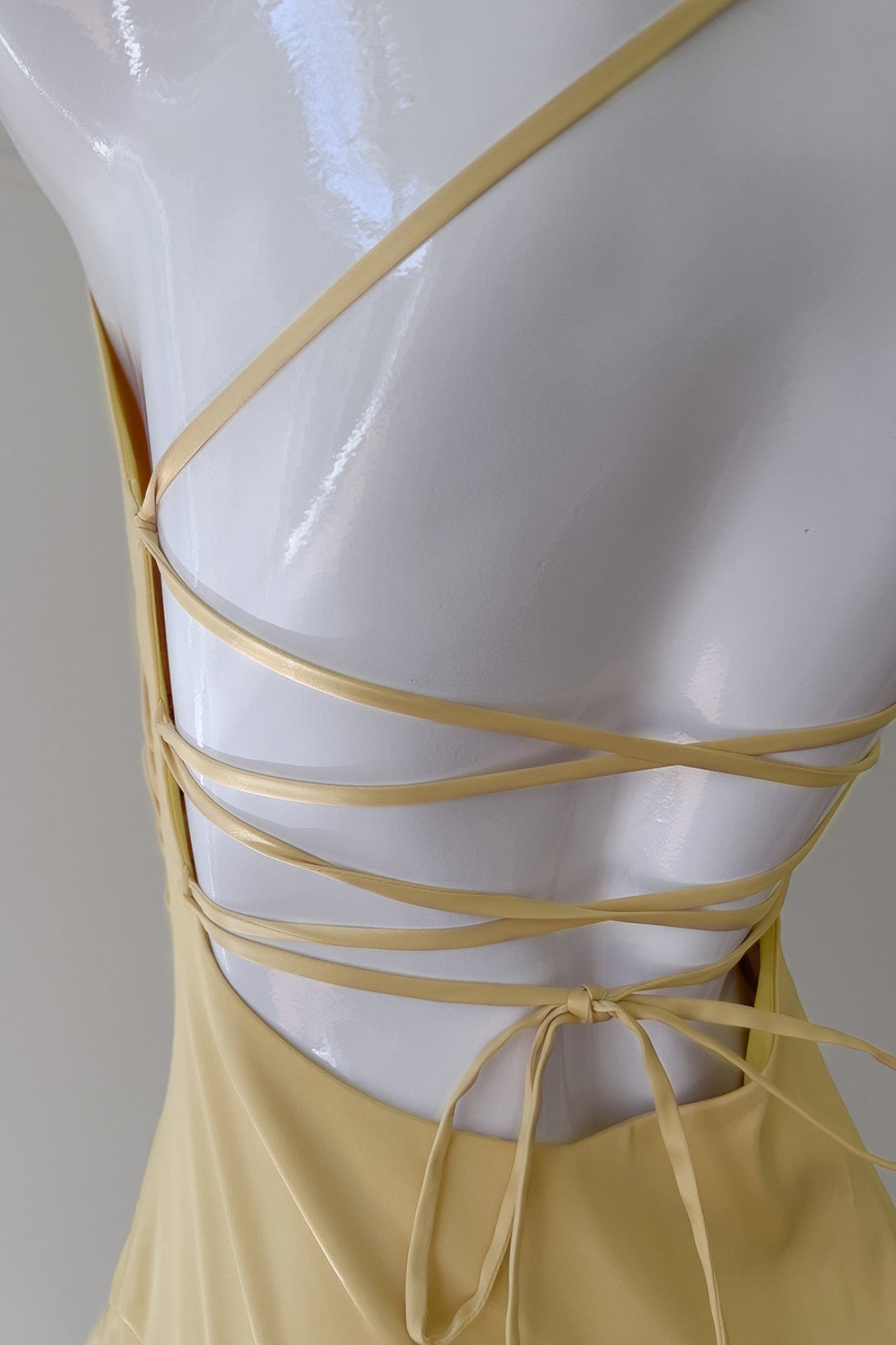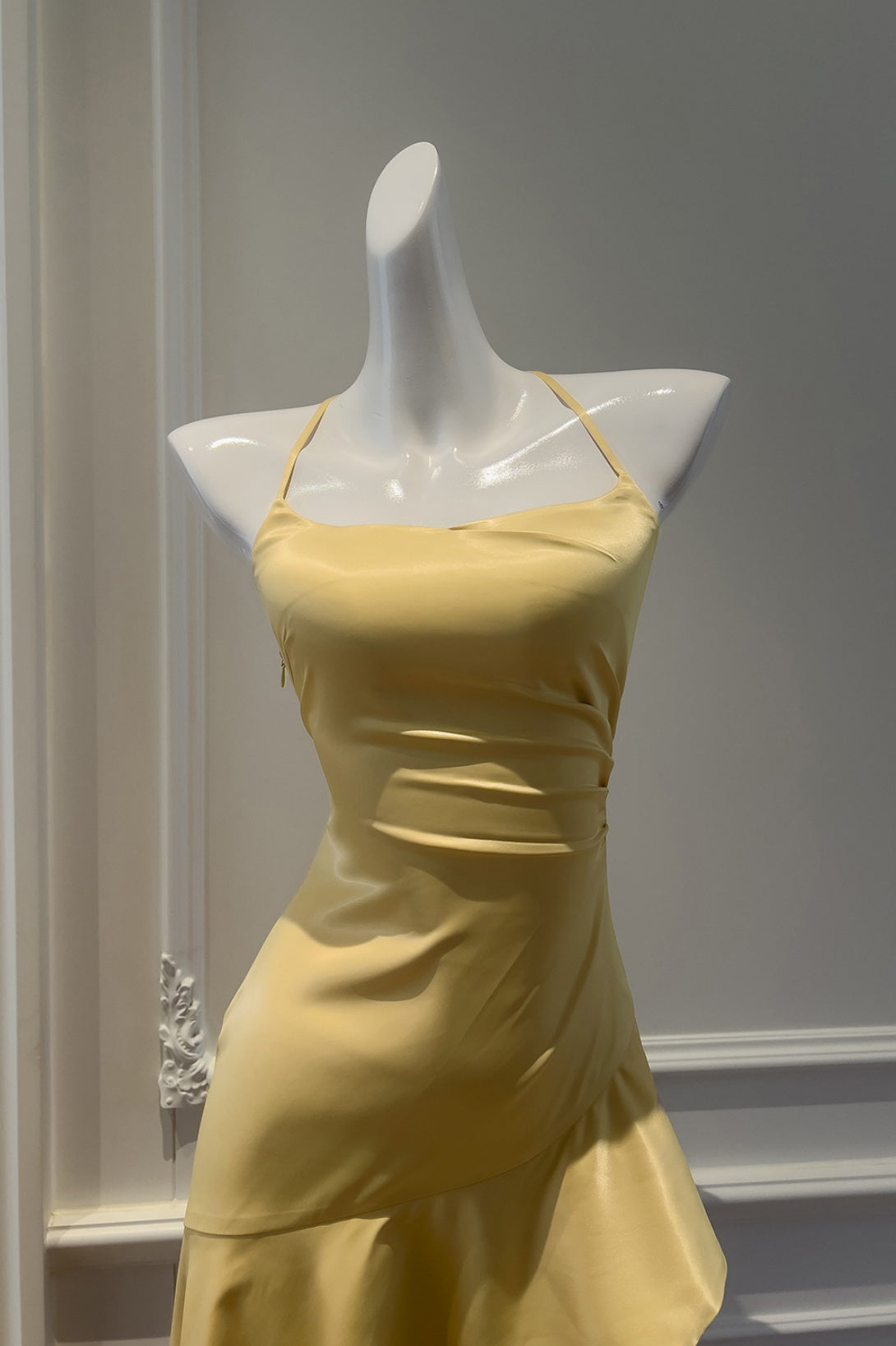 Yellow Halter Asymmetrical Ruffled A-line Dress