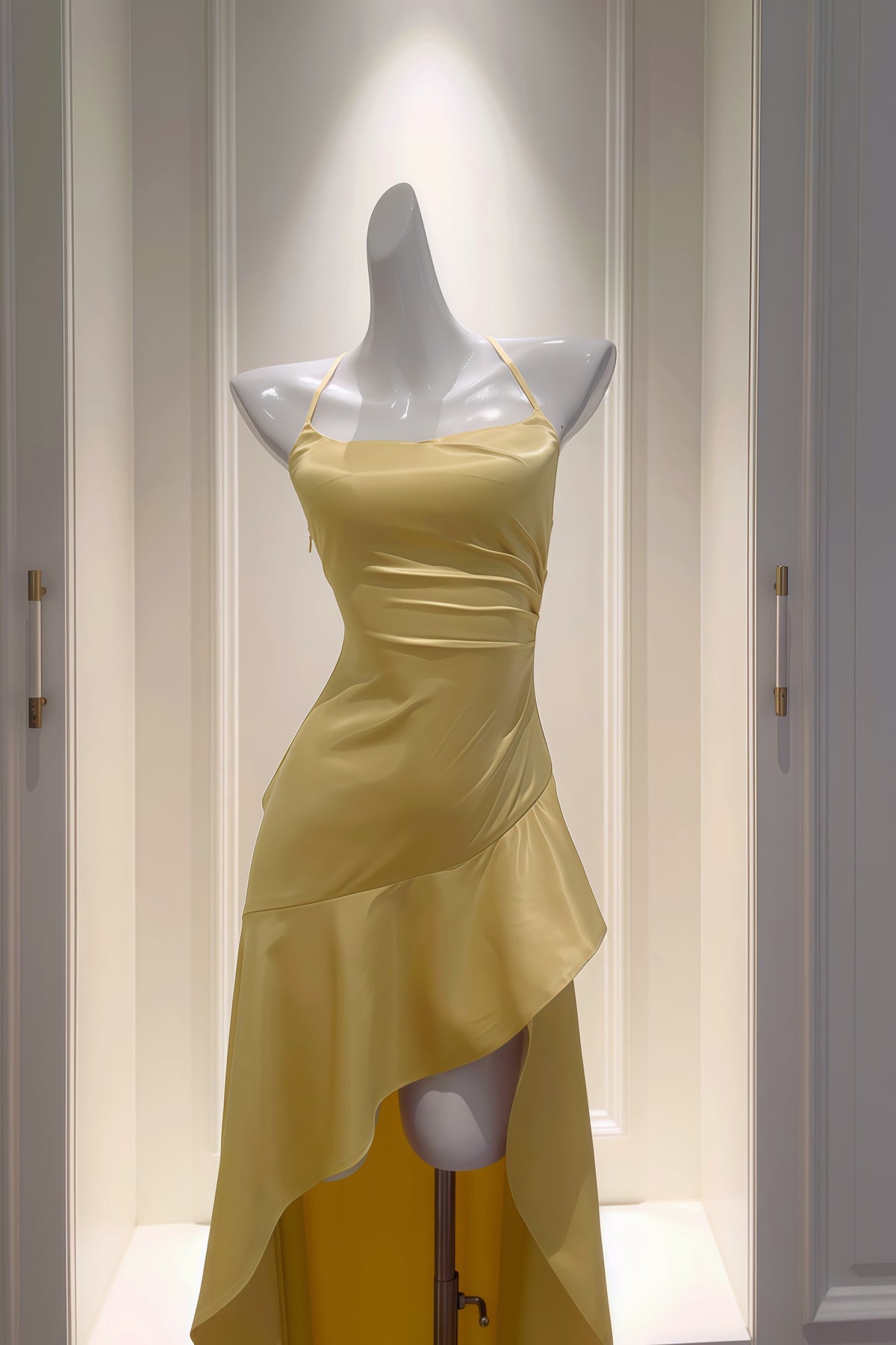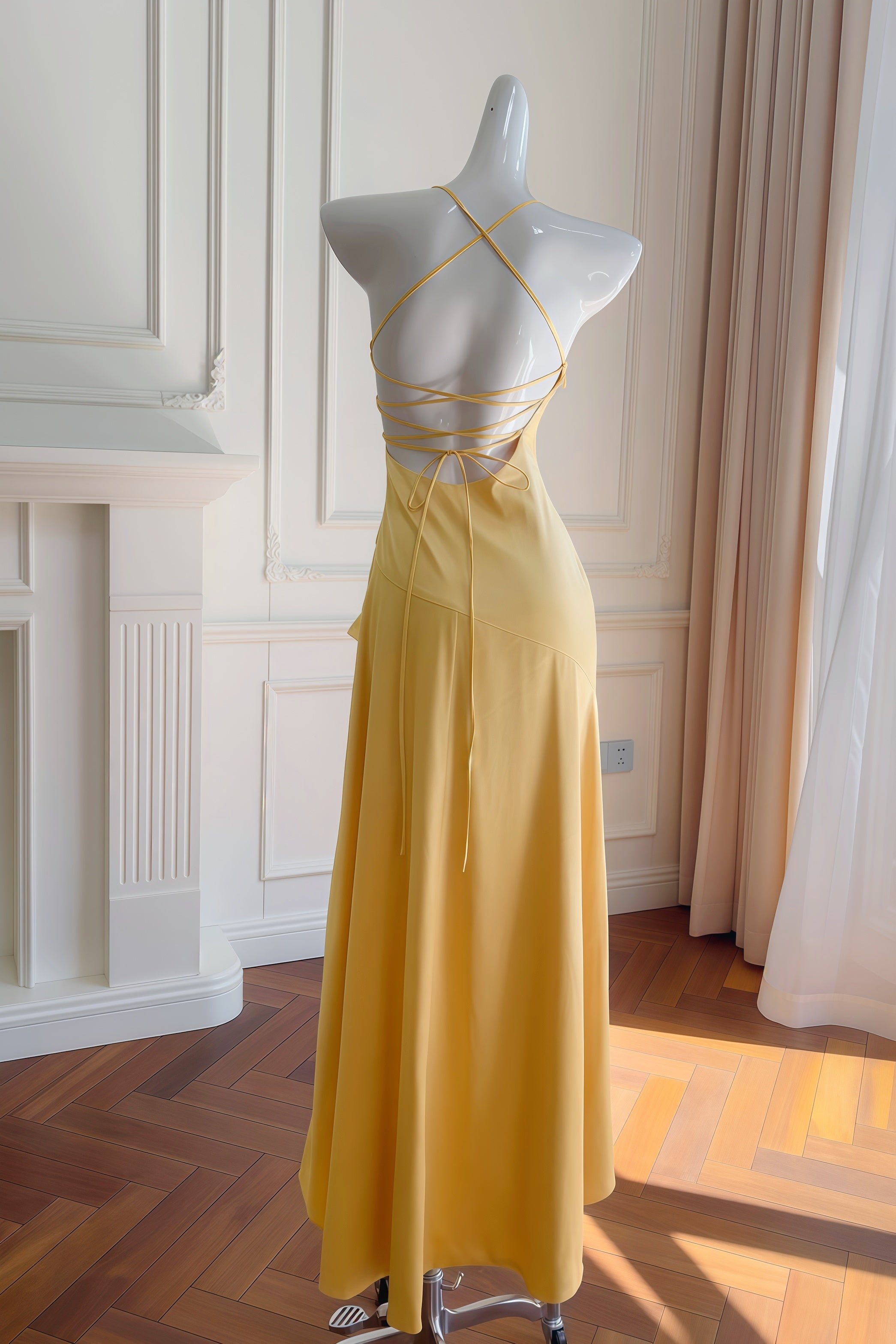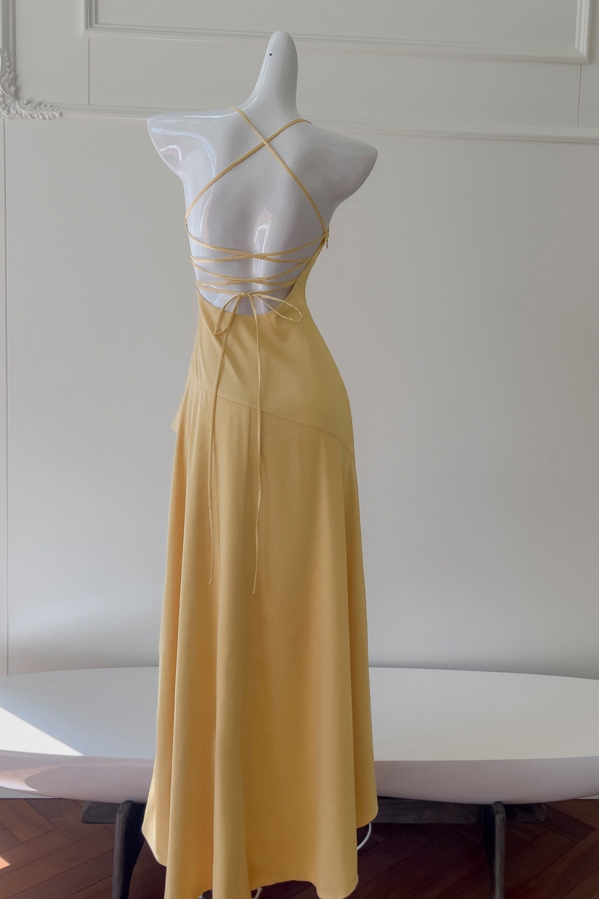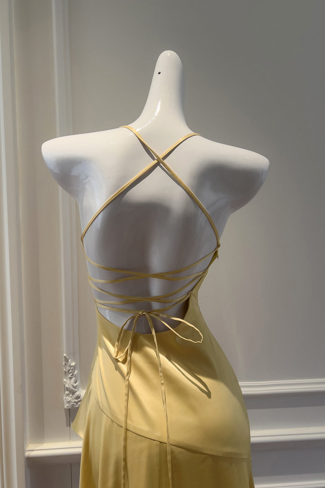 Yellow Halter Asymmetrical Ruffled A-line Dress
