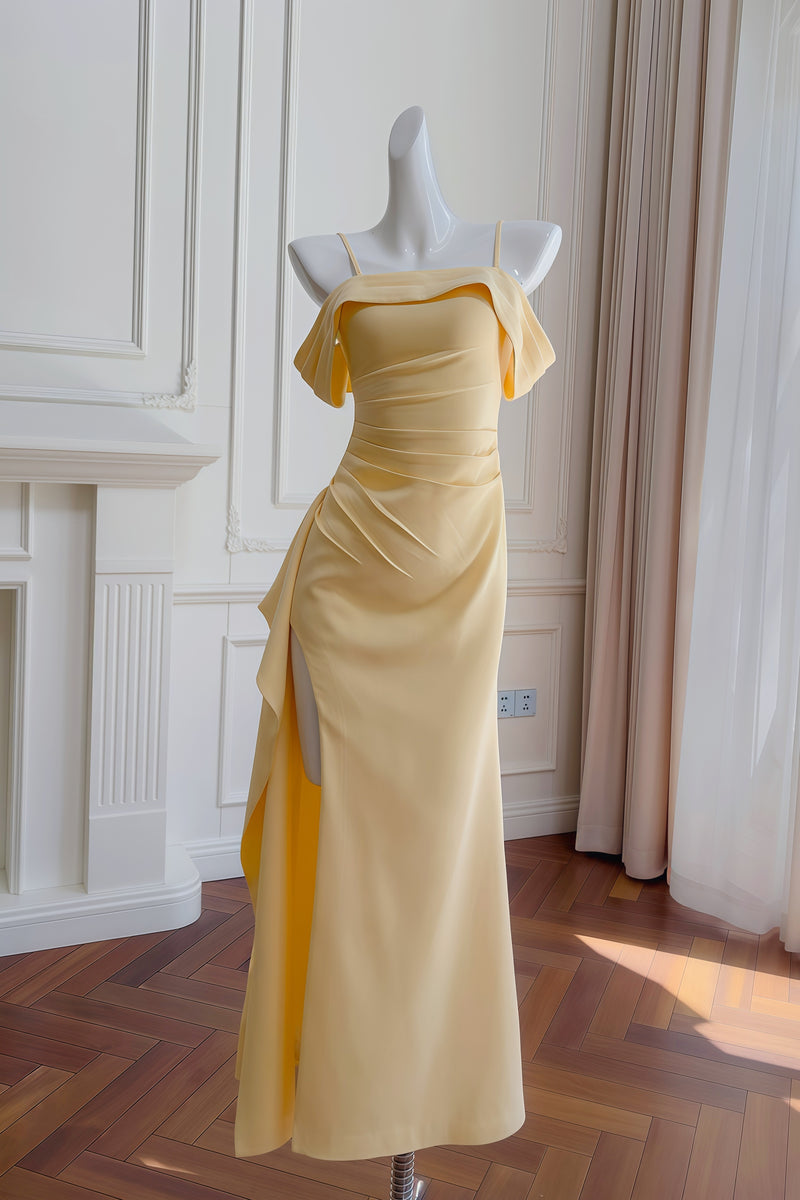 Yellow Halter Asymmetrical Ruffled A-line Dress