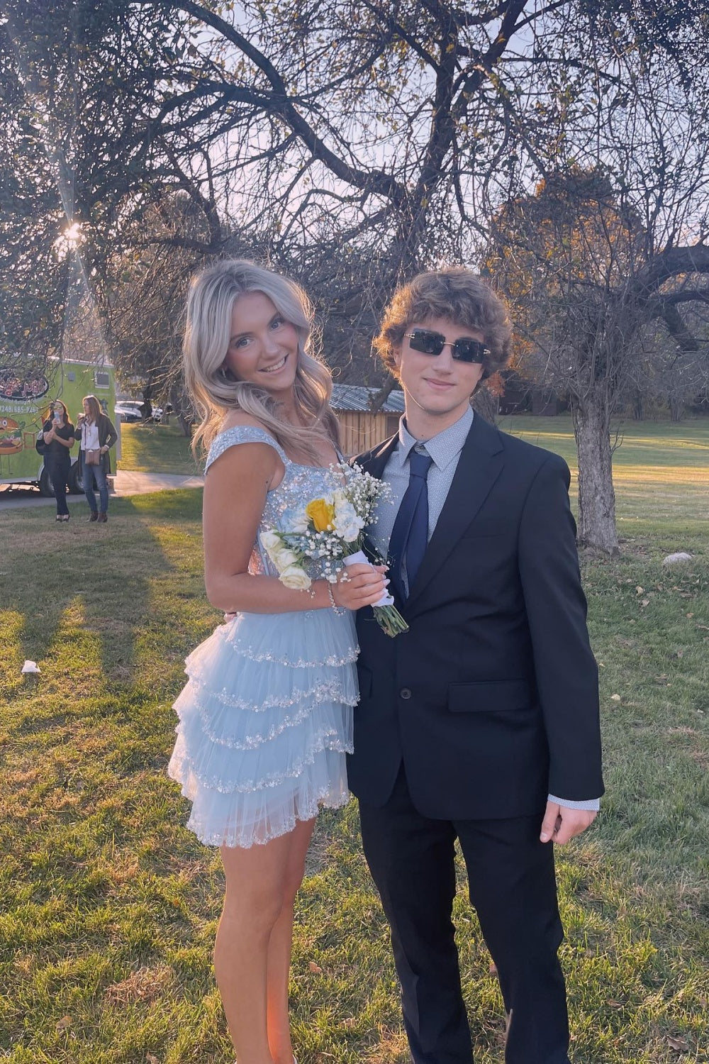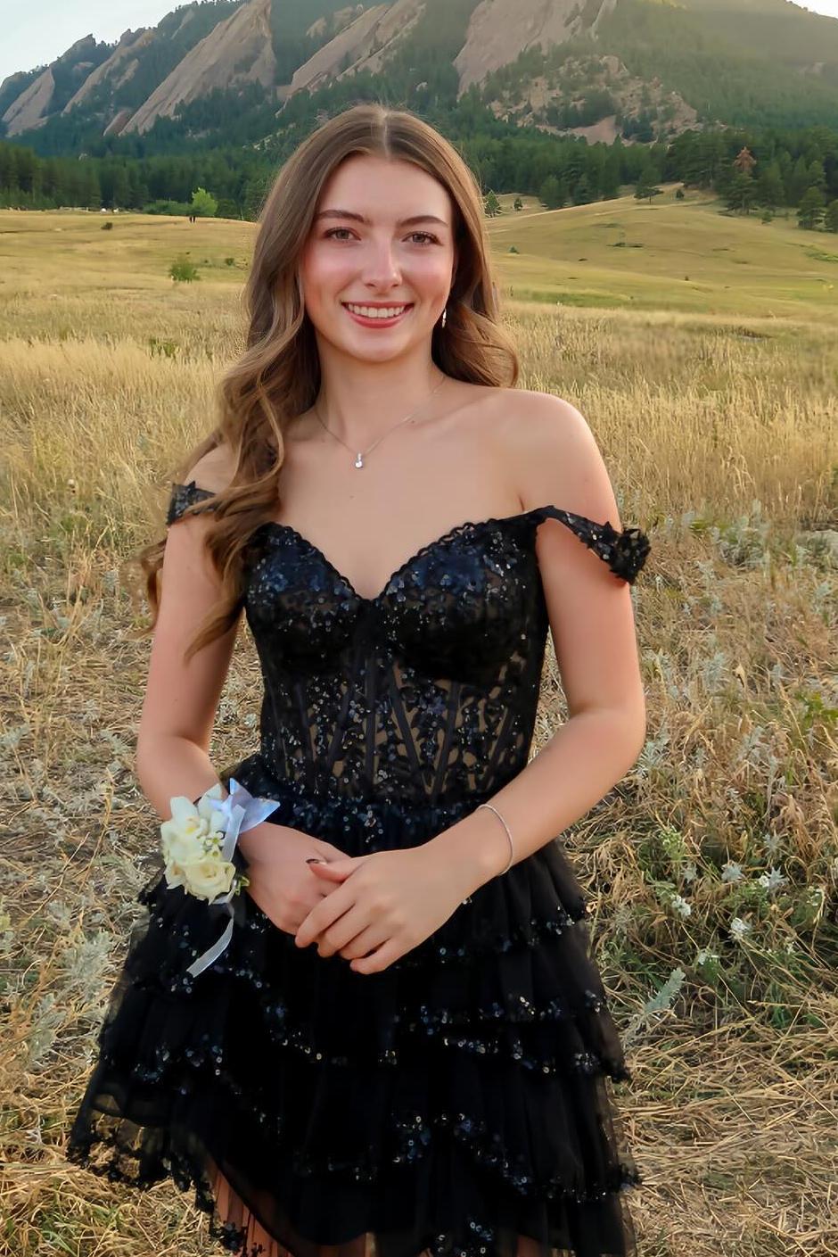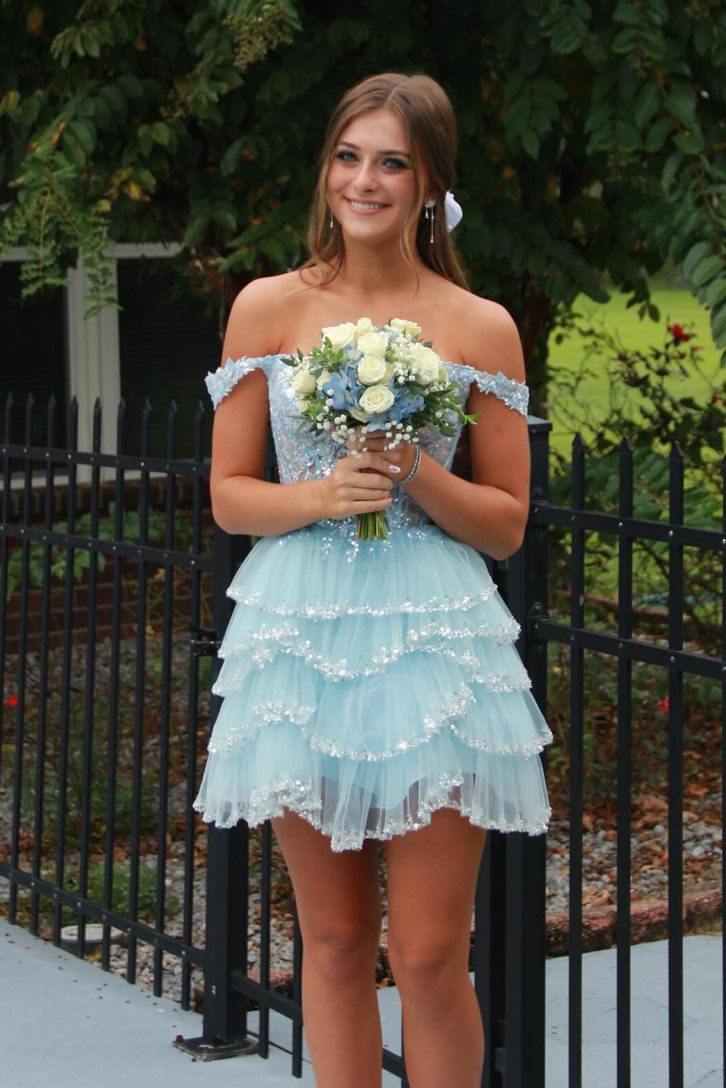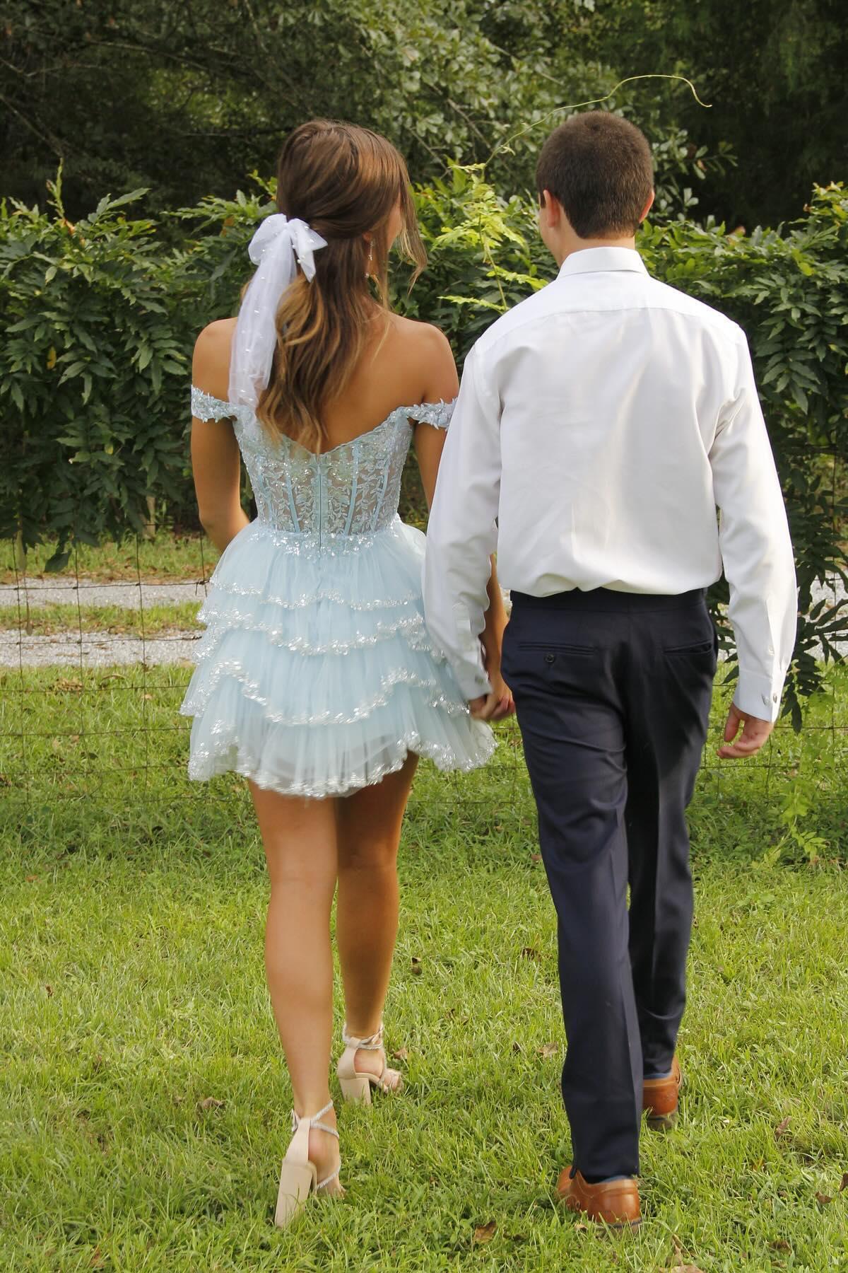 Off the Shoulder Lavender Sequin Ruffle Short Homecoming Dress