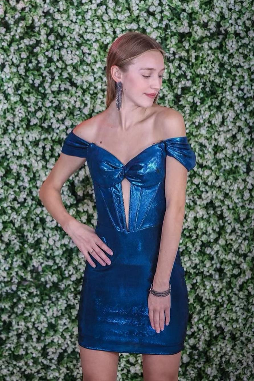 Off the Soulder Purple Knotted Tight Mini Dress