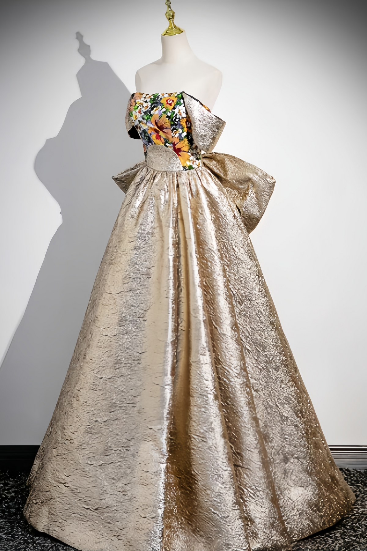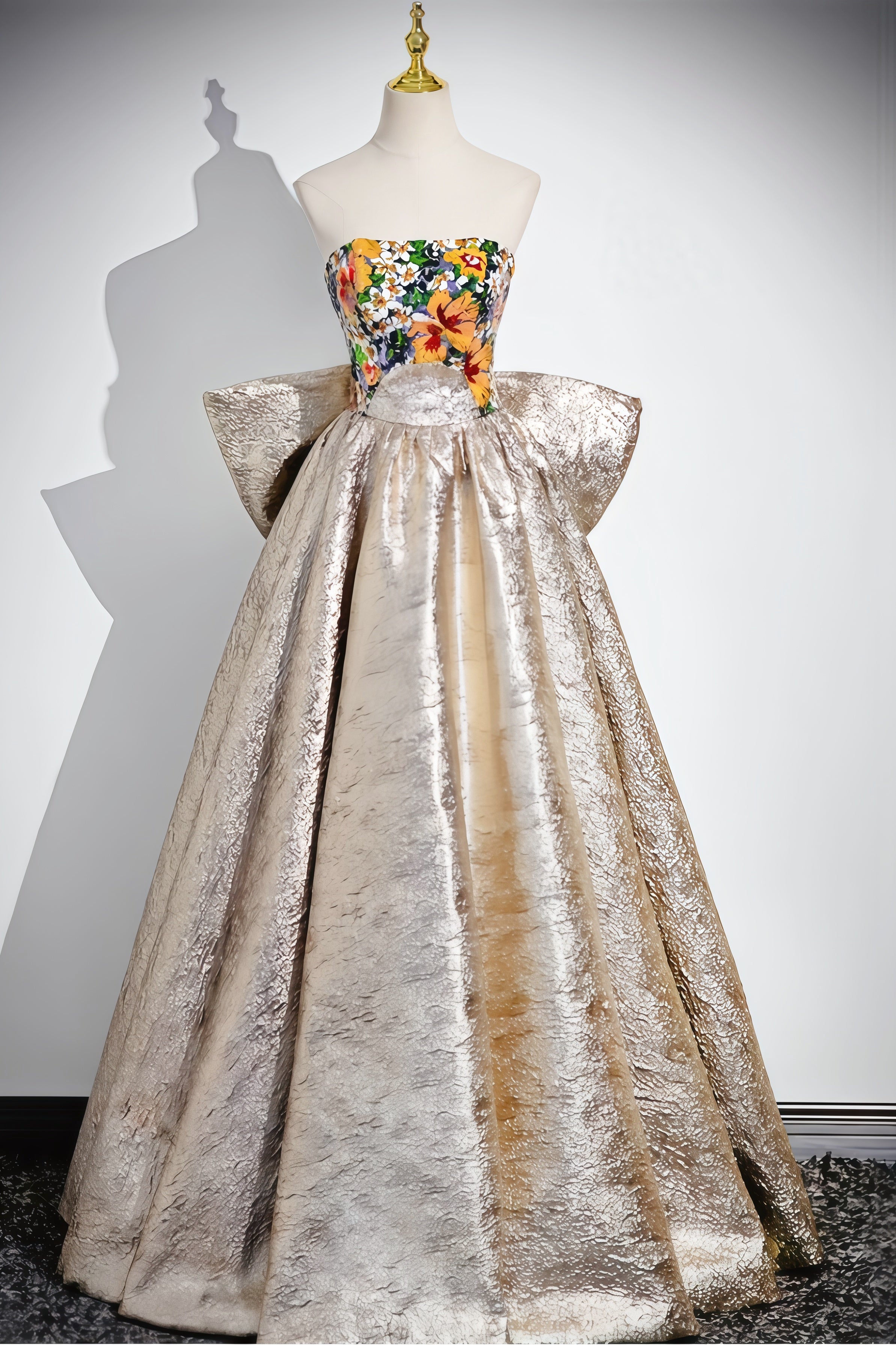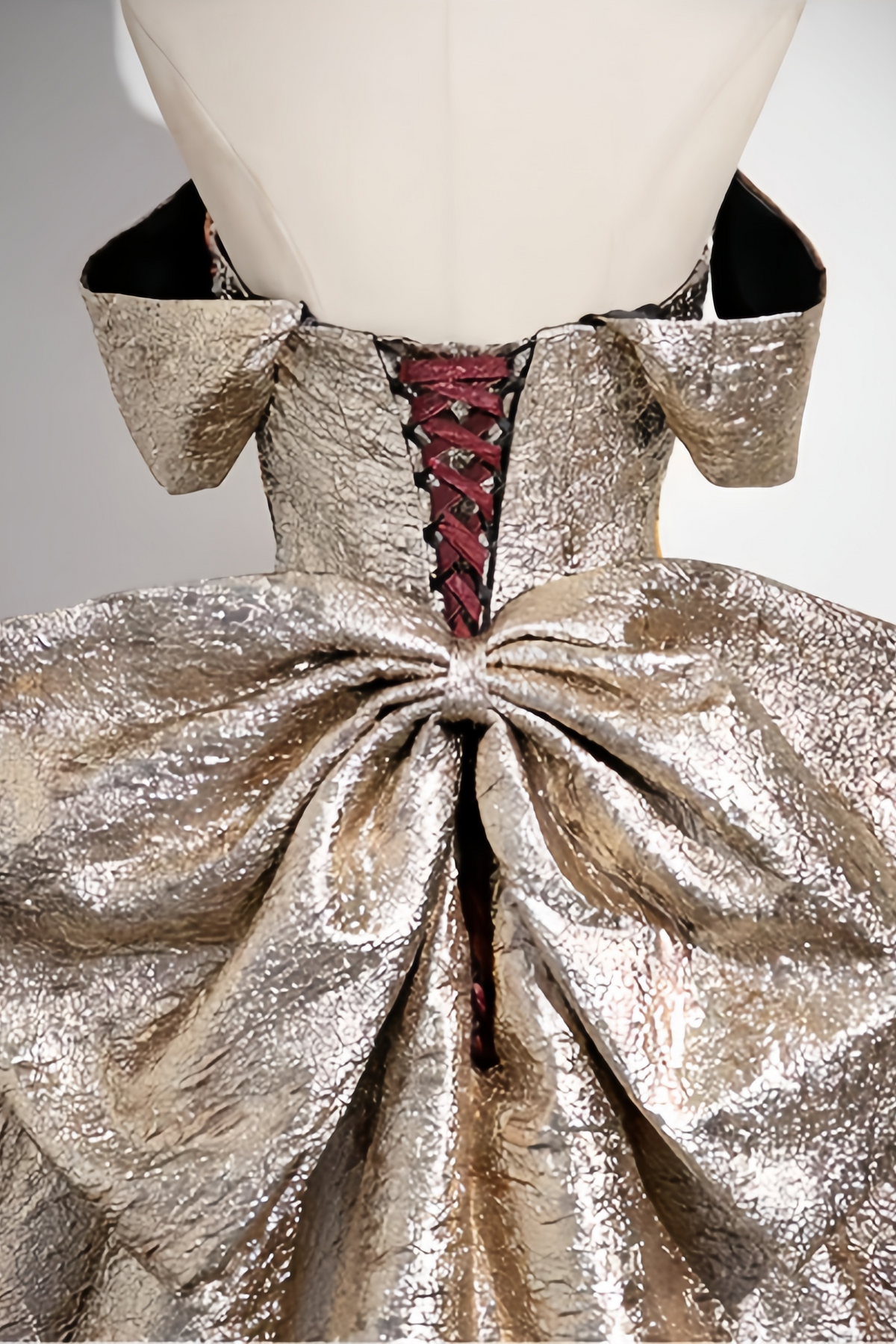 Champagne Sequin Bow Off-the-shoulder A-line Dress