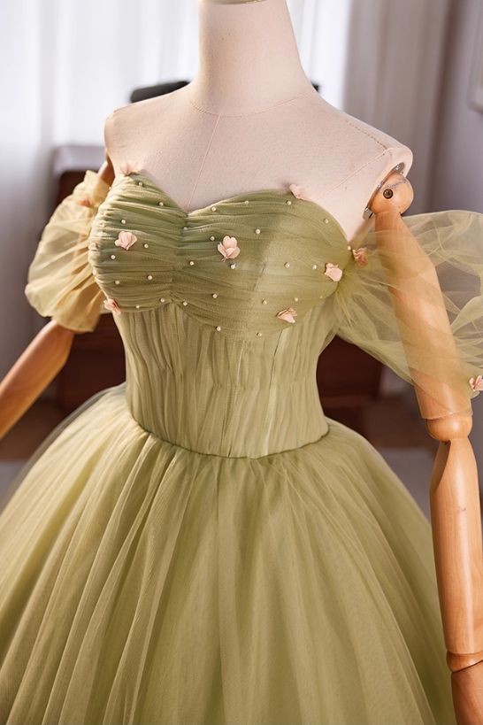Green Off the Shoulder Corset Ball Gown